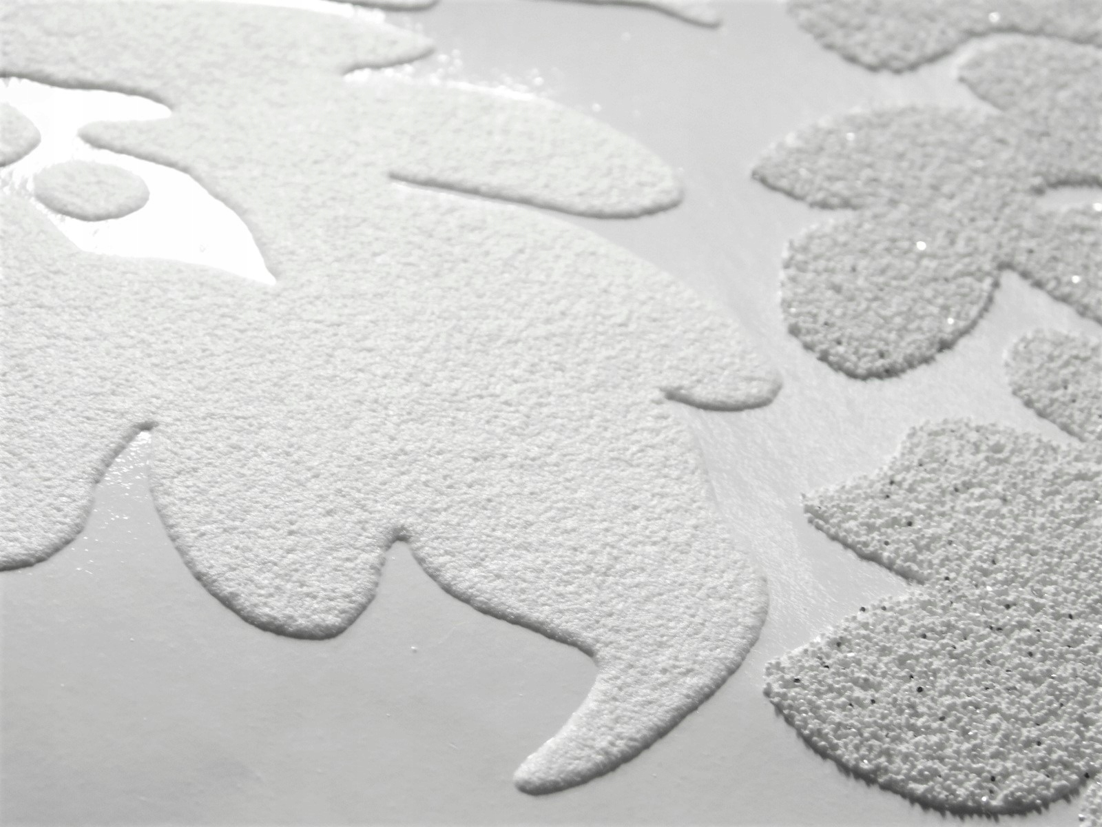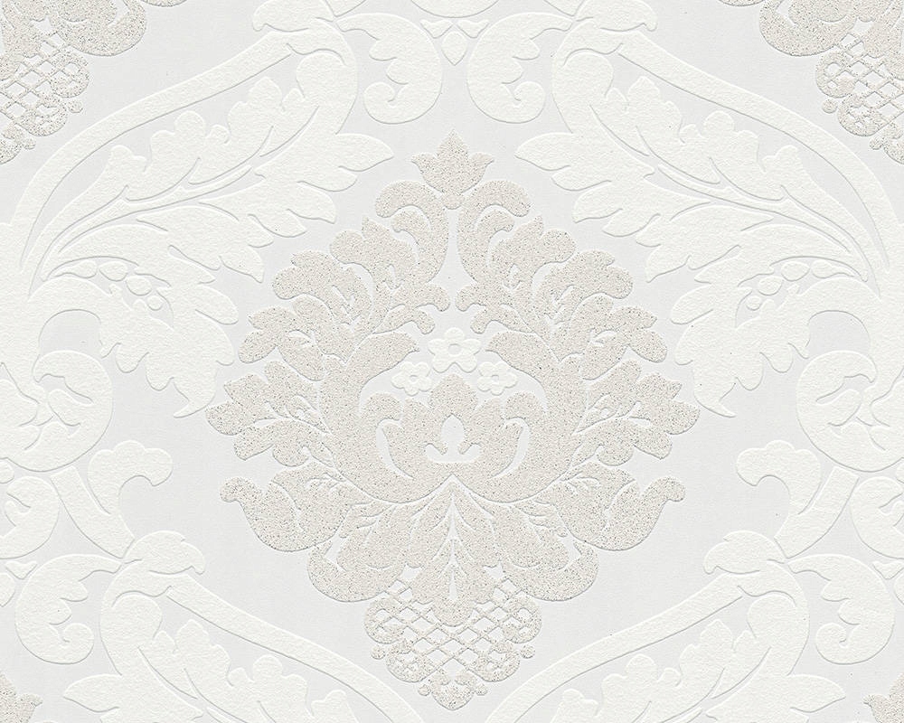 Необычайно изящные настенные обои с нежным, но богатым мотивом. Композиция состоит из сложных орнаментов, представленных на белом фоне. Серебристый рисунок имеет легкий металлический блеск и подчеркнут стильным тиснением в структуре, благодаря чему он отчетливее выделяется на фоне. Использование таких светлых тонов оптически увеличит декорированный интерьер и добавит ему визуальной легкости.