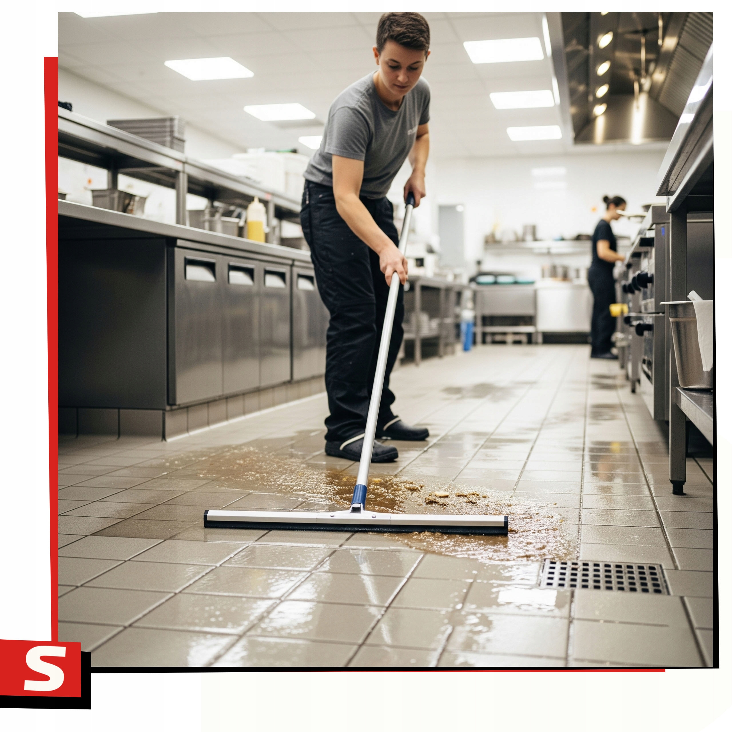 Ракель шириной 75 см с двойной резиной и ручкой из нержавеющей стали идеально подходит для дома, холла и подсобных помещений. Эффективно удаляет воду с различных поверхностей, обеспечивая чистоту и безопасность.