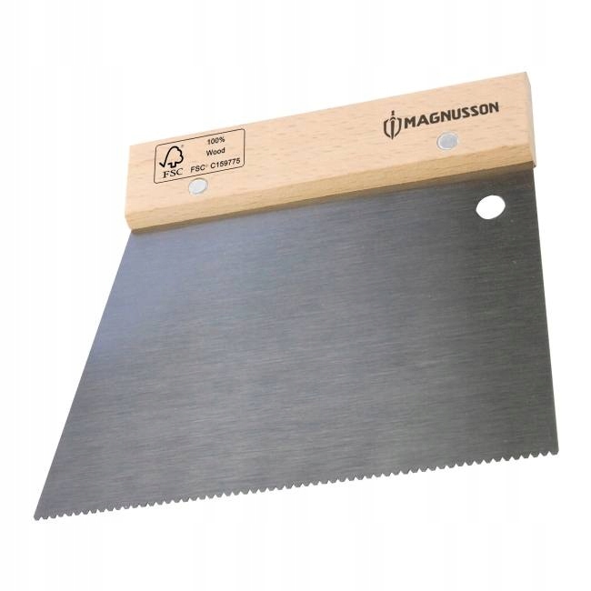 Магнуссон -виниловый клей для клея имеет V -образные зубы. Благодаря этому продукт облегчит вам распространять клей. Аксессуар имеет рабочую часть из стали, которая обеспечивает длительное использование. Удобная ручка была изготовлена из прочного букового дерева, которая была получена ответственным образом