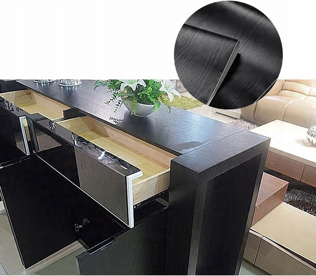 МЕБЕЛЬНЫЙ ШПОН ЧЕРНАЯ ФОЛЬГА МАТОВАЯ ДЕРЕВЯННАЯ САМОКЛЕЯЩАЯСЯ ДВЕРИ МЕБЕЛЬ 61Х500СМ