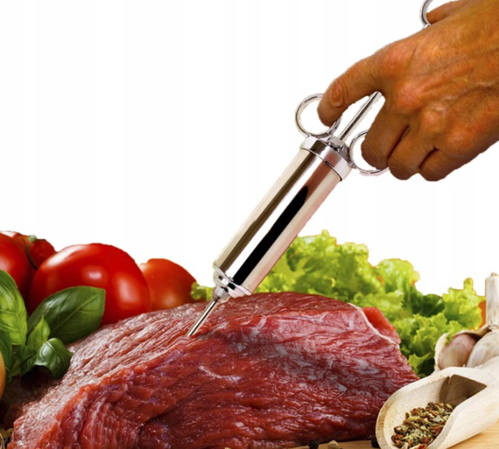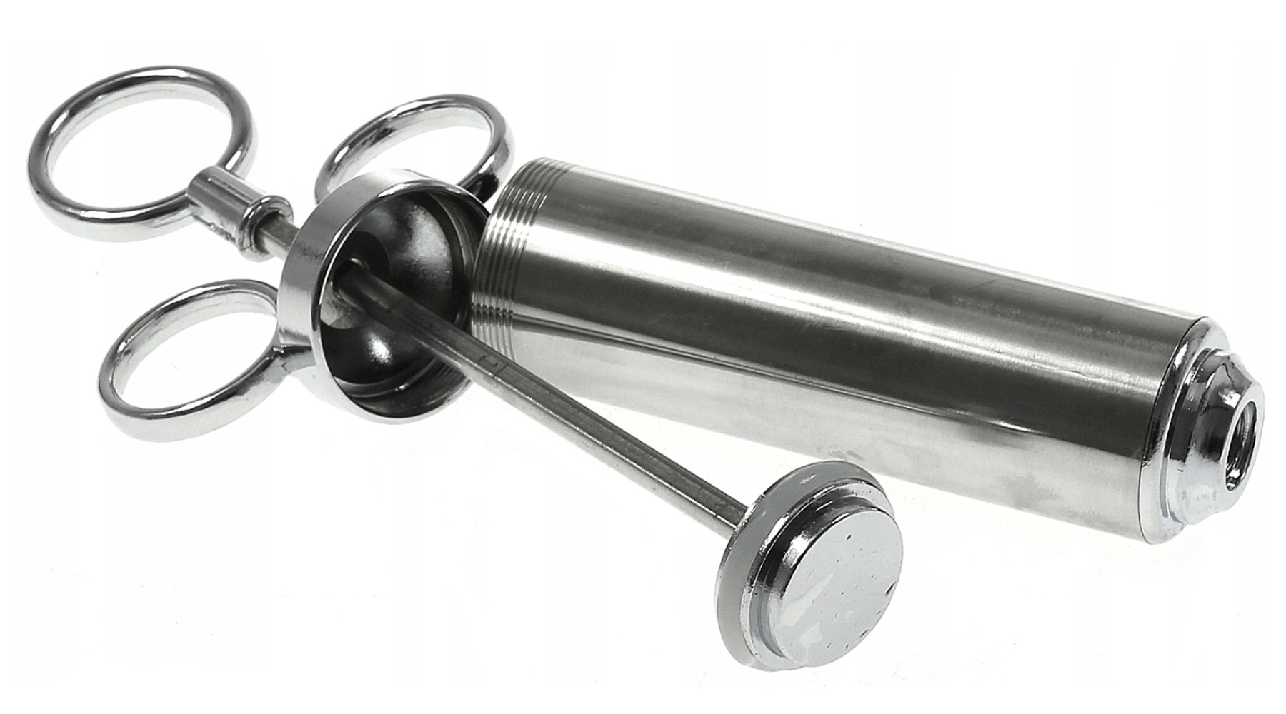 Шприц из нержавеющей сталипредназначен для консервирования и маринования мяса, ветчины, свиной корейки и птицы. Он сохранит мягкость мяса и идеальный аромат.