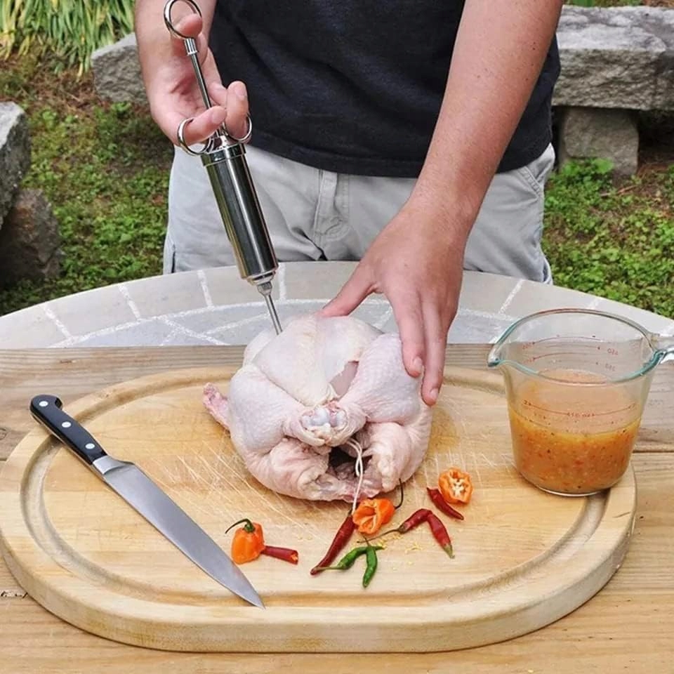 💉💉【 60 мл стального шприца для маринованного】 благодаря высокой емкости вы можете мариновать мясо сразу; Вы также можете использовать шприцы для маринада для впрыскивания жидкого масла, специй или нарезанных трав непосредственно к мясу.