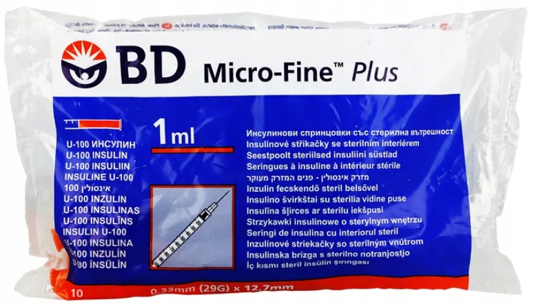 Инсулиновая шприц 1 мл U-100 м-лежа+ 29 г 12,7 мм 10 шт.