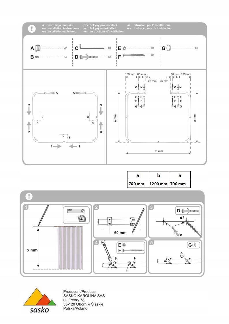 Обеспечивает беспрепятственное скольжение шторы, поскольку не требует подвеса к потолку. Конструкция позволяет затягивать шторуна боковую стену, тем самым защищая угол от попадания воды.Инновационная система крепления > обеспечивает высокую стабильность и долговечность. Благодаря своим преимуществам рекомендуется для квартир, отелей, гостевых домов и объектов коммунального хозяйства.При сборке бара использовано инновационное сочетание алюминиевых элементов. Изготовлен из высококачественного алюминиевого сплава стандарта PN – PA38 (EN 6060), который характеризуется очень высокой коррозионной стойкостью и хорошей пластичностью.< /li>Порошковое покрытие согласно ISO9001:2008 (белый RAL 9016). Диаметр алюминиевой трубки 25 мм, толщина стенки 1,5 мм.В комплект входят: белый алюминиевый стержень диаметром 25 мм (4 элемента для соединения), винты 6х70, дюбели FISCHER 8х40 (4 шт), маскировочные заглушки (4 шт), заглушки для трубных отверстий. (2 шт.), контрвинты (3 шт), шестигранный ключ, инструкция по сборке.