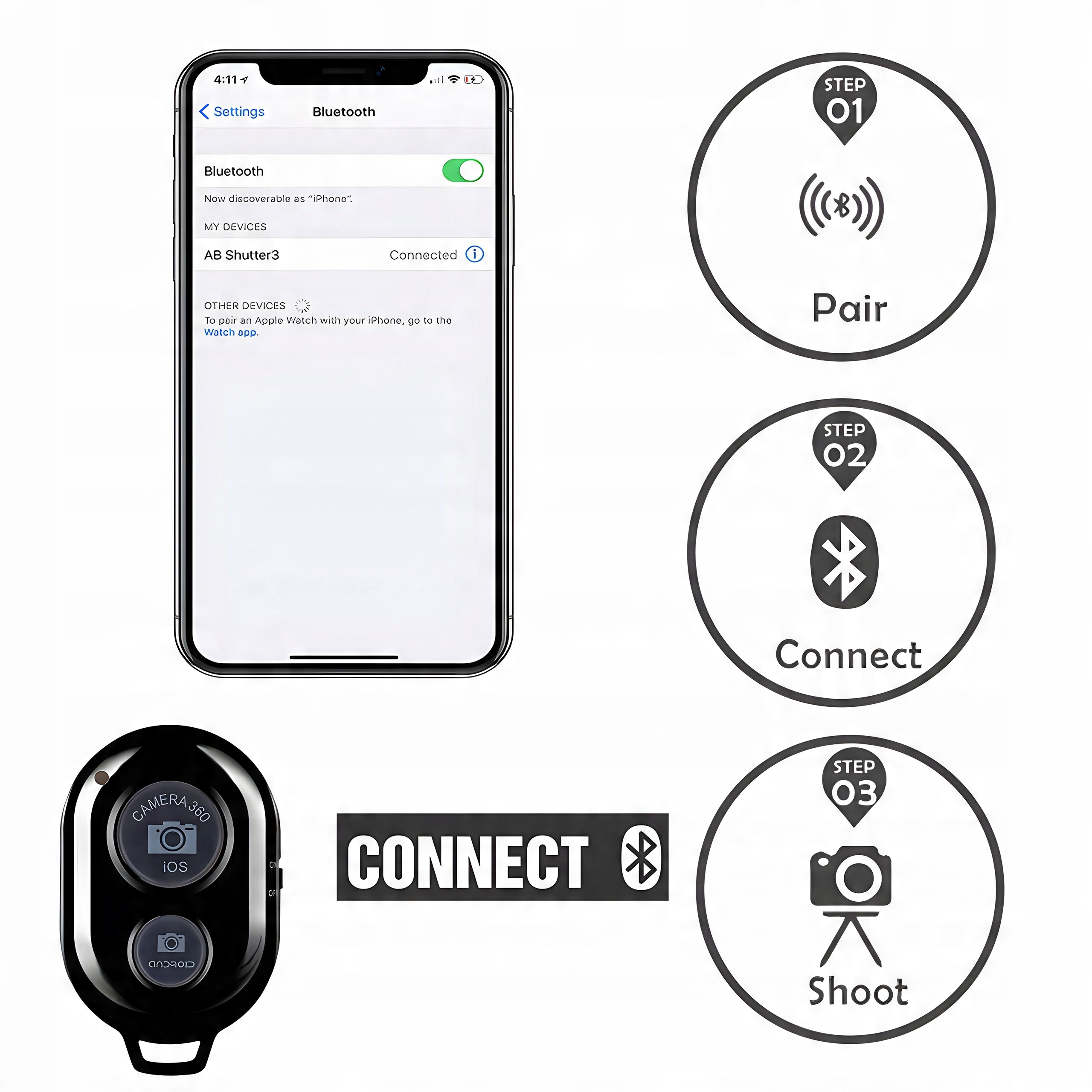 Благодаря ему можно фотографировать и записывайте видео, не прикасаясь к телефону или камере.
