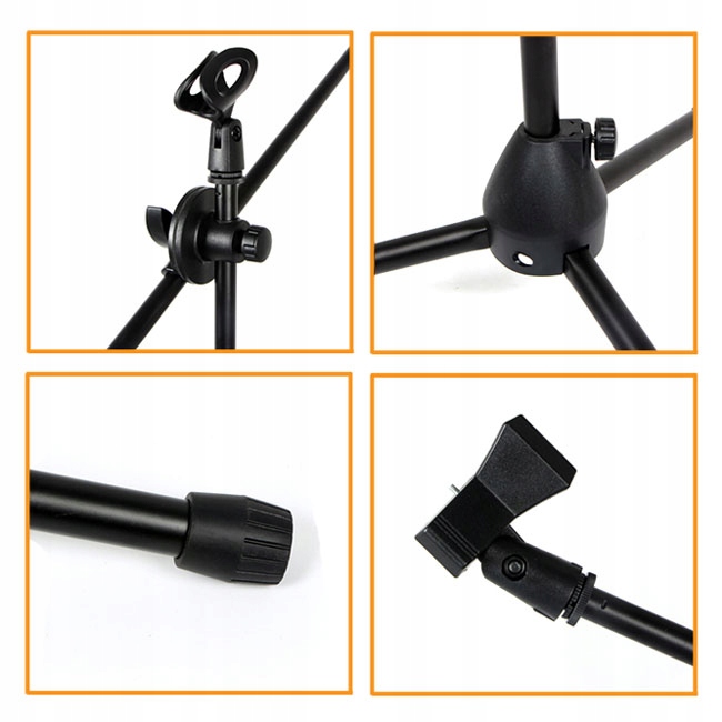 Штатив подходит к любому микрофону благодаря двум разным держателям: 1) зажимного типа и 2) диаметром 2,7 см.