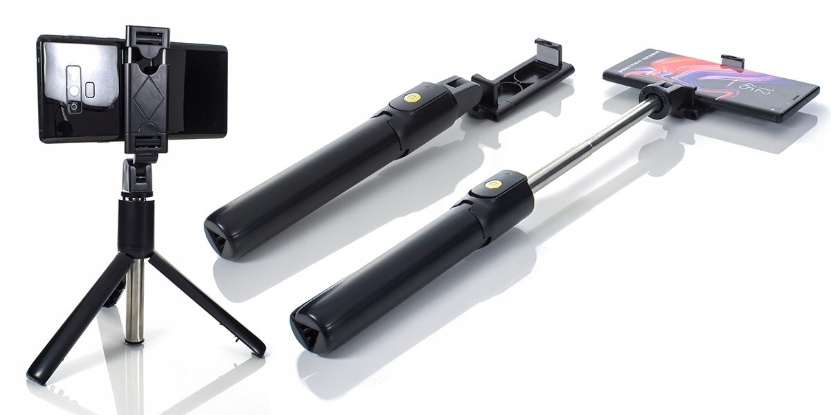 ШТАТИВ ДЛЯ СЕЛФИ-ПАЛКИ С ЧЕРНЫМ ПУЛЬТОМ ДУ.