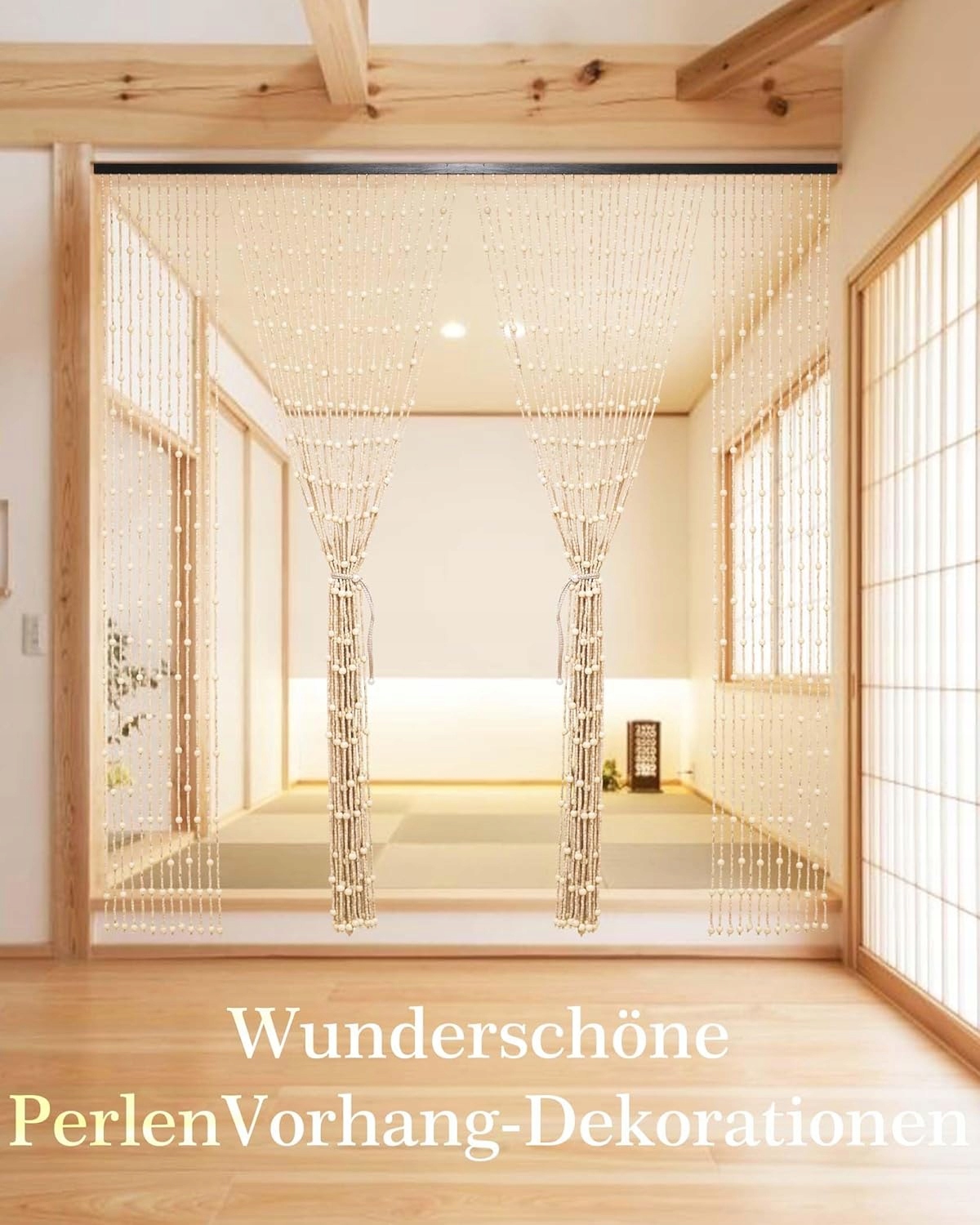 Многочисленное применение: деревянные шторы с бусинами можно использовать не только в столовых, гостиных, спальнях, ванных комнатах, кухнях, дверях и окнах, но также в качестве украшения перегородок. Их также можно использовать в кафе, офисах, гостиных, гостиницах, барах и в качестве украшения стен.