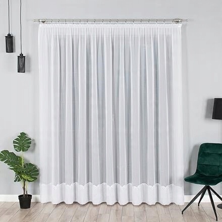 Красивая, элегантная штора из вуали с декоративной полосой внизу, высота 300 см.