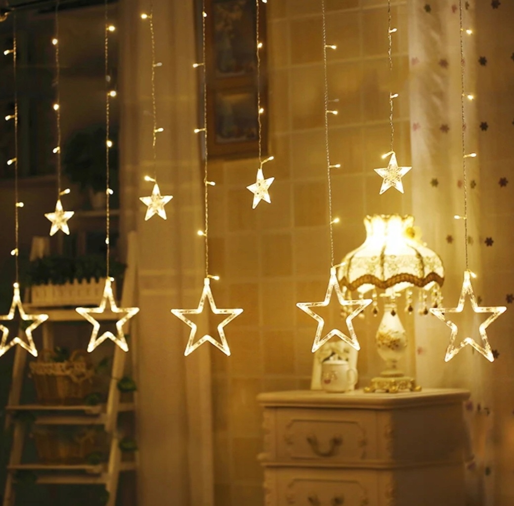 ШТОРА НОВИЧНА ГІРЛЯНДА, LED ЗІРКИ НА ВІКНО, ЯЛИНОВІ ВОГНІ, 3м ТЕПЛІ
