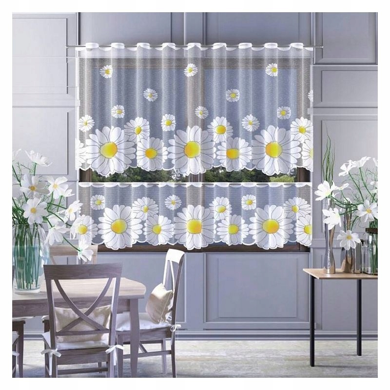 Пусть жаккардовая штора «Ромашка» высотой 90 см оживит интерьер вашей кухни или столовой и создаст очаровательную цветочную атмосферу в вашем доме.