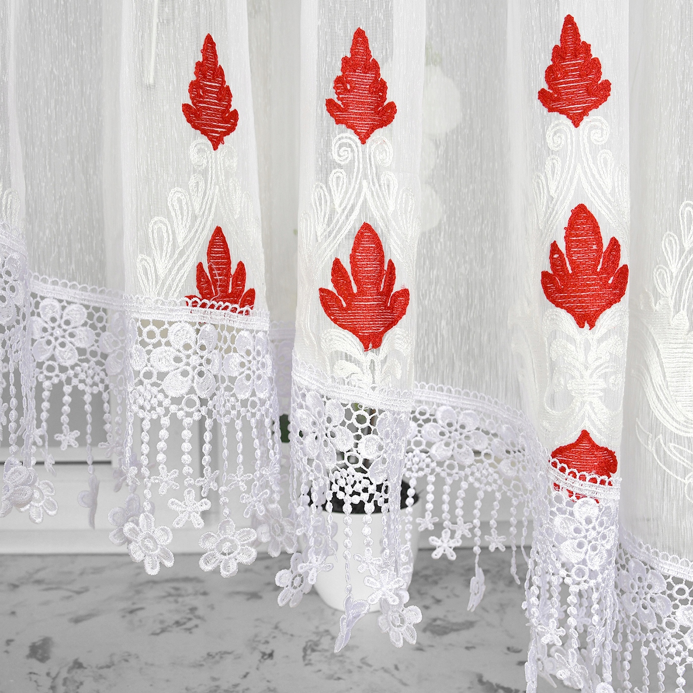 Наслаждайтесь красотой и уникальностью шторы с вышивкой из соболя. материал и декорирован гипюром. Его элегантный дизайн, художественные узоры и изысканность сделают его центральным элементом вашего интерьера. Приготовьтесь к моментам релаксации и неповторимой атмосфере с этой очаровательной и стильной шторой.