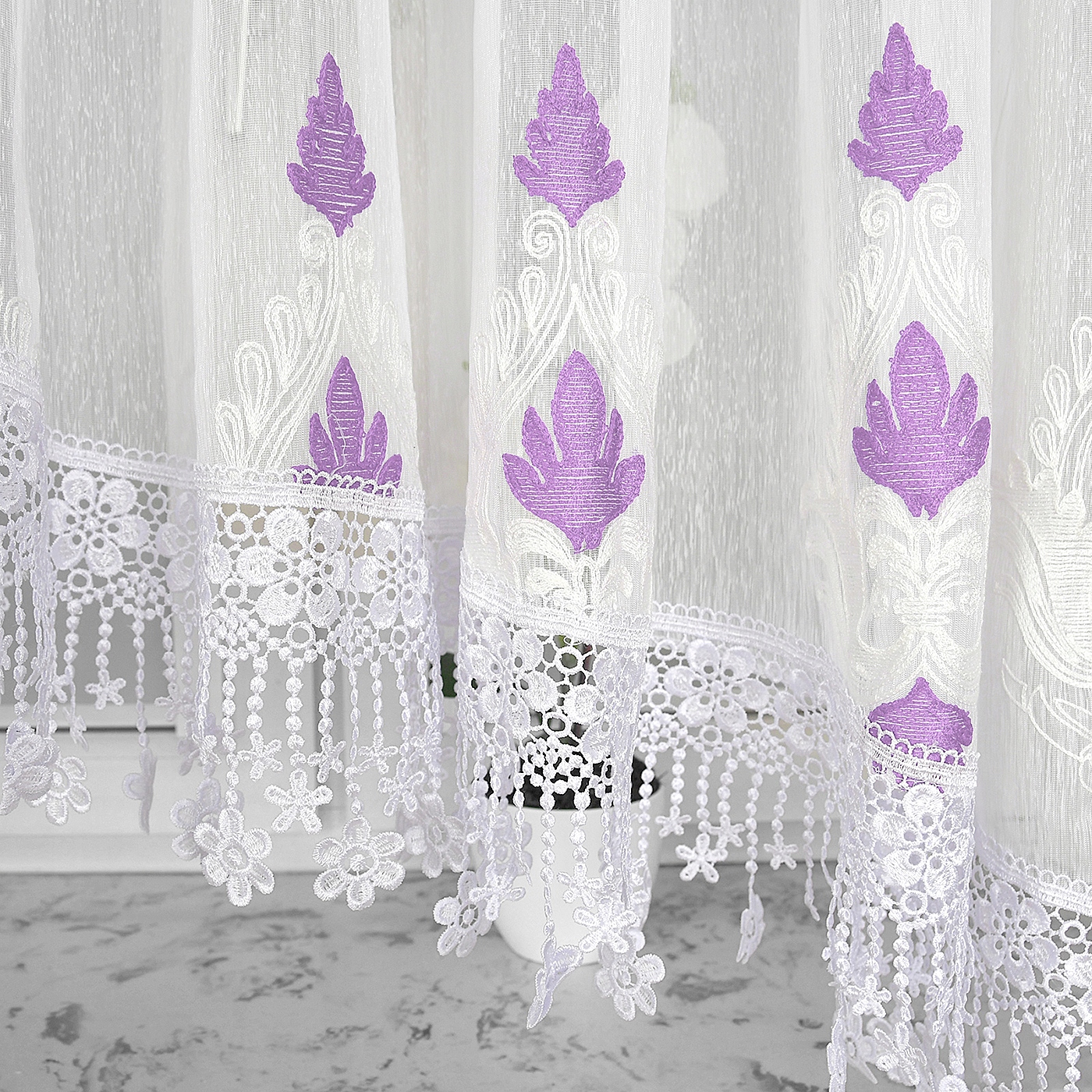 Штора не только украшает, но и играет практическую роль в регулировании количества света, попадающего в помещение, обеспечивая приватность и создавая уютную атмосферу. Его легкая конструкция и уникальный гипюровый декор создают гармонию функциональности и красоты.