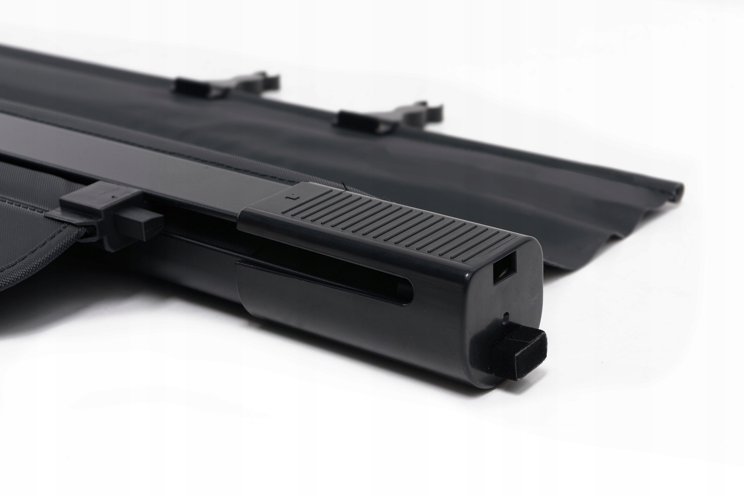- Дополнительные ручки позволяют выкатывать рулонную штору в сторону спинки заднего сиденья и прикреплять к ней подголовники.