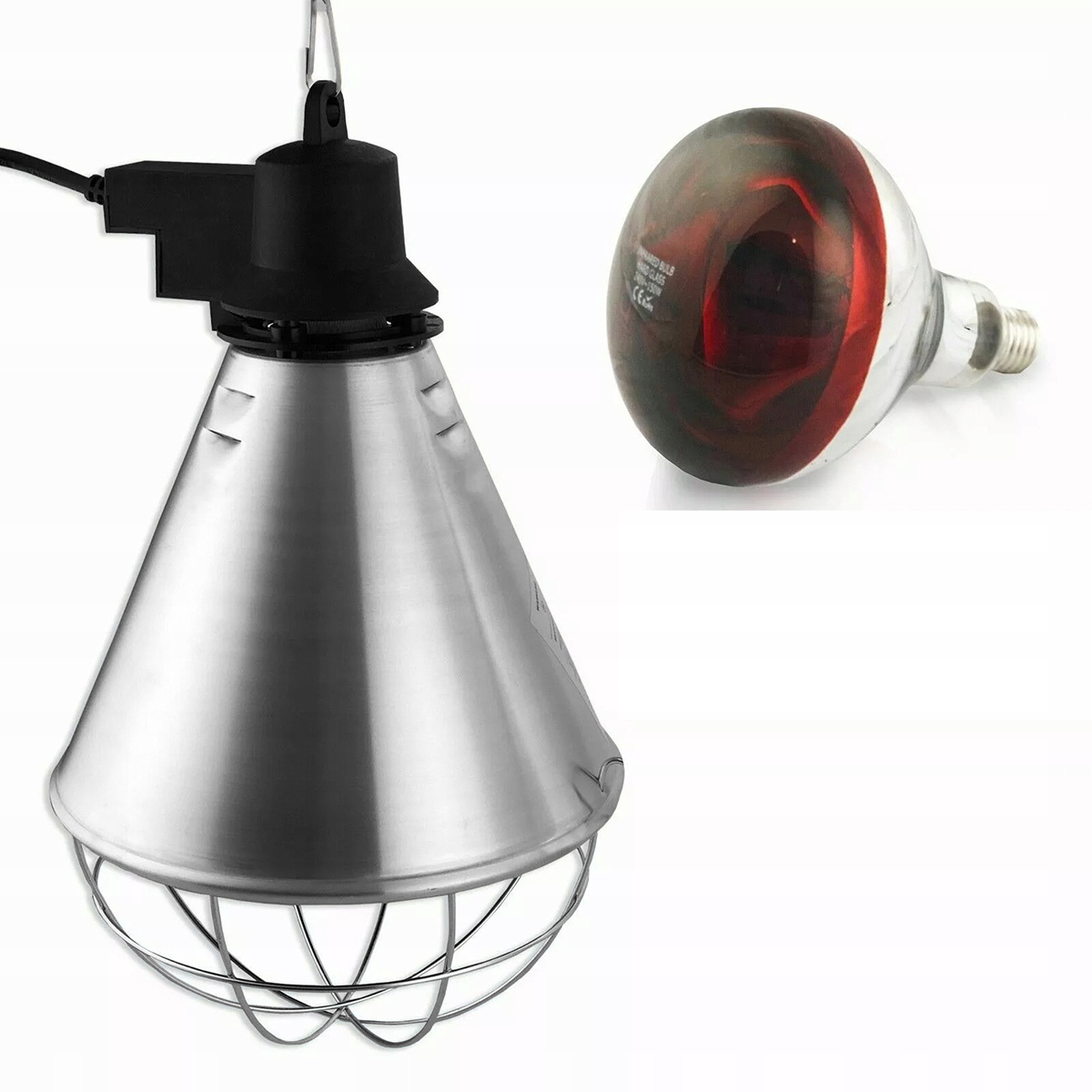 Набор инфракрасных ламп E27 с нагревательными лучами, инфракрасной лампой с красным светом, нагревательной лампой, нагревательной лампой, тепловым радиатором, поросенной лампой 250 Вт + отражательными лампами с защитной решеткой, 2 -метровой цепью для монтажа и 2,5 -метровой кабеля