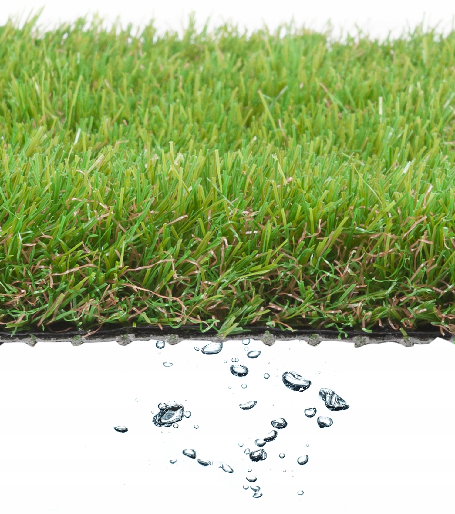 Основание искусственной травы имеет дренажные отверстия, обеспечивающие эффективный отвод лишней воды с поверхности искусственного газона, благодаря чему трава остается сухим, и пользователи могут быстро использовать пространство после дождя.