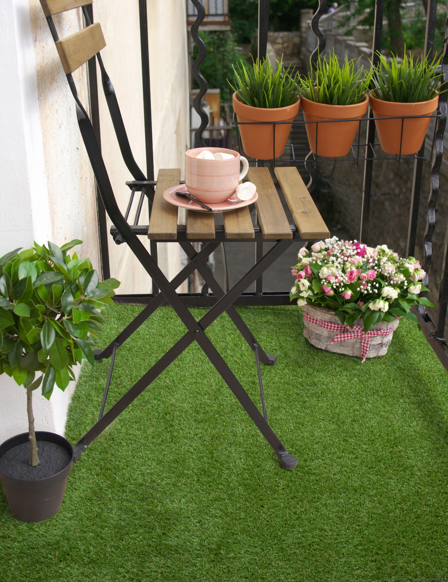 - Помните, что при установке травы на открытом воздухе защитите ее от сильных порывов ветра, добавив соответствующий вес, например, садовую мебель, или используя соединительную ленту также на края травы.