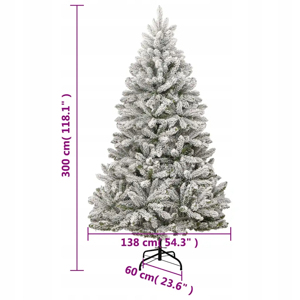 Елка искусственная навесная, ПВХ, зелено-белая, украшенная снегом, высота 300 см, диаметр 138 см