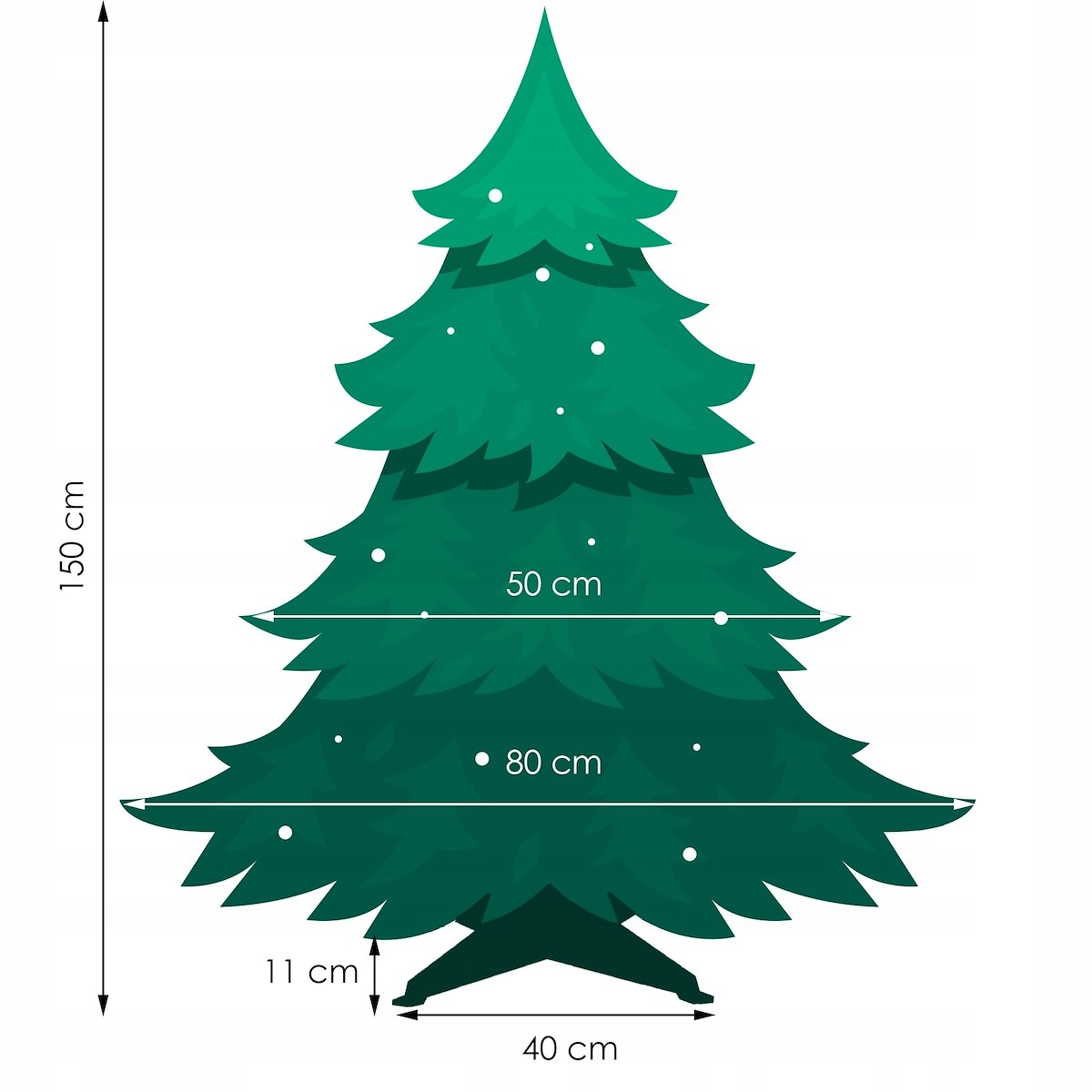 - Размах в зависимости от расположения ветвей елки: 80 см.