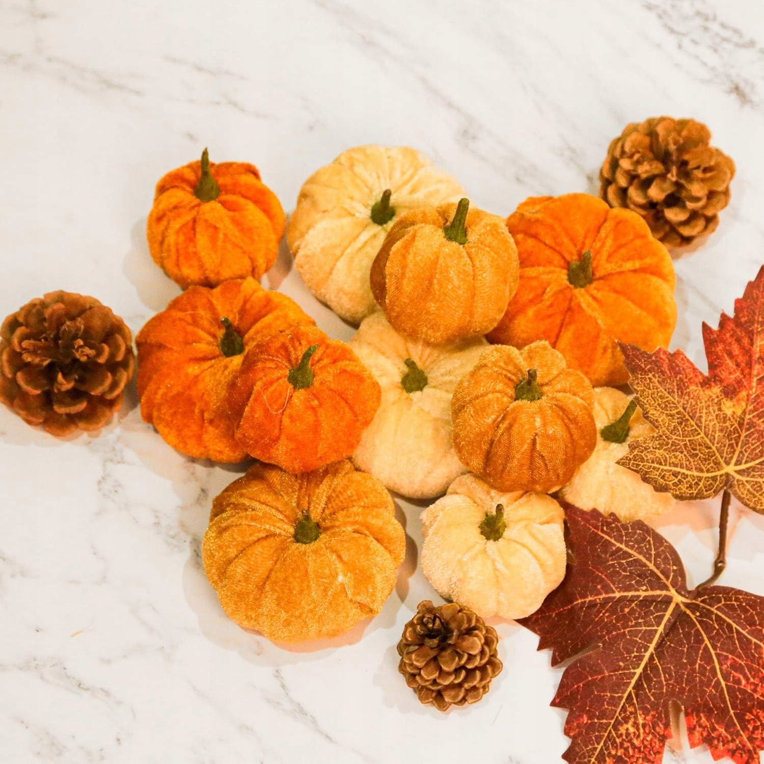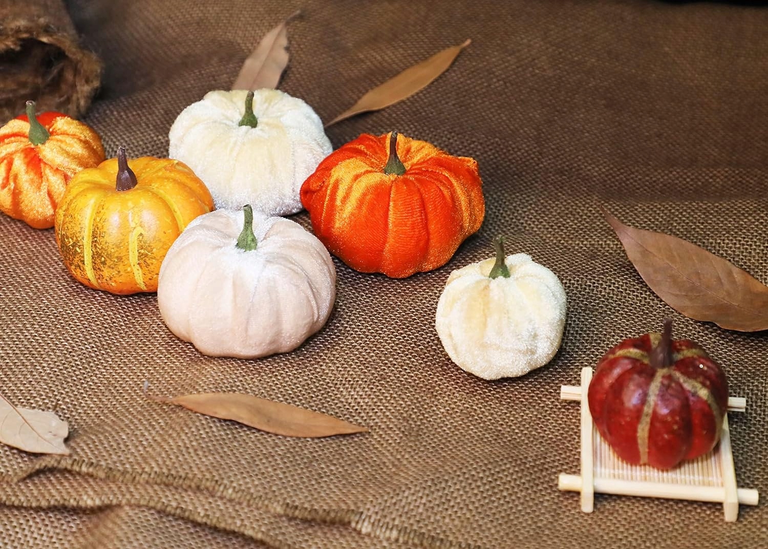 Искусственные тыквы, бархатисты, украшение - 12 штук