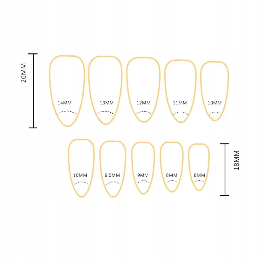 Набор имеет разнообразные размеры , так что вы можете идеально соответствовать искусственному гвозду с натуральной ногочной плитой.