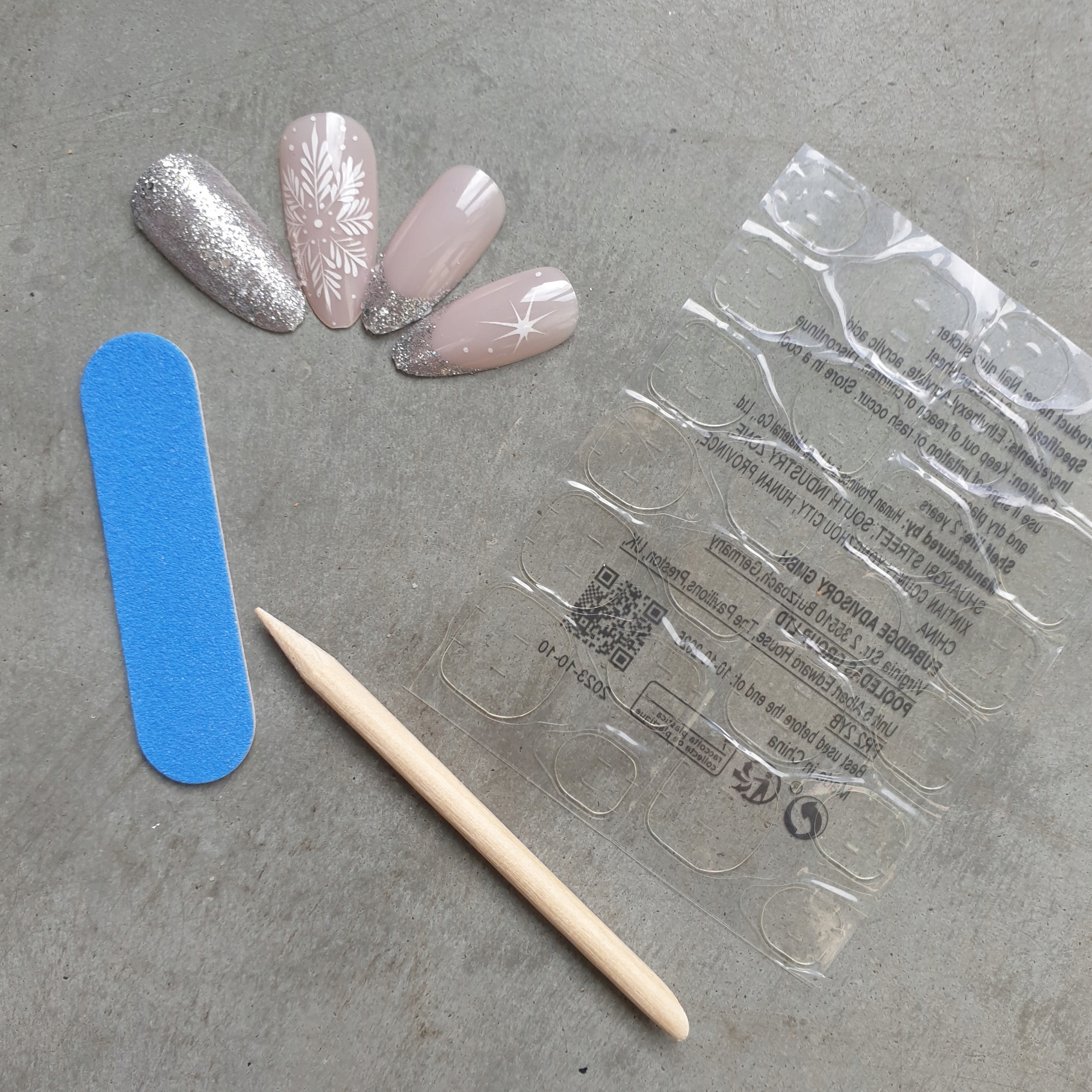 ШТУЧНІ НІГТІ РІЗДВО ЗИМА НЮД НІГТІ БЛИСК СНІЖИНКА 24 ШТ.
