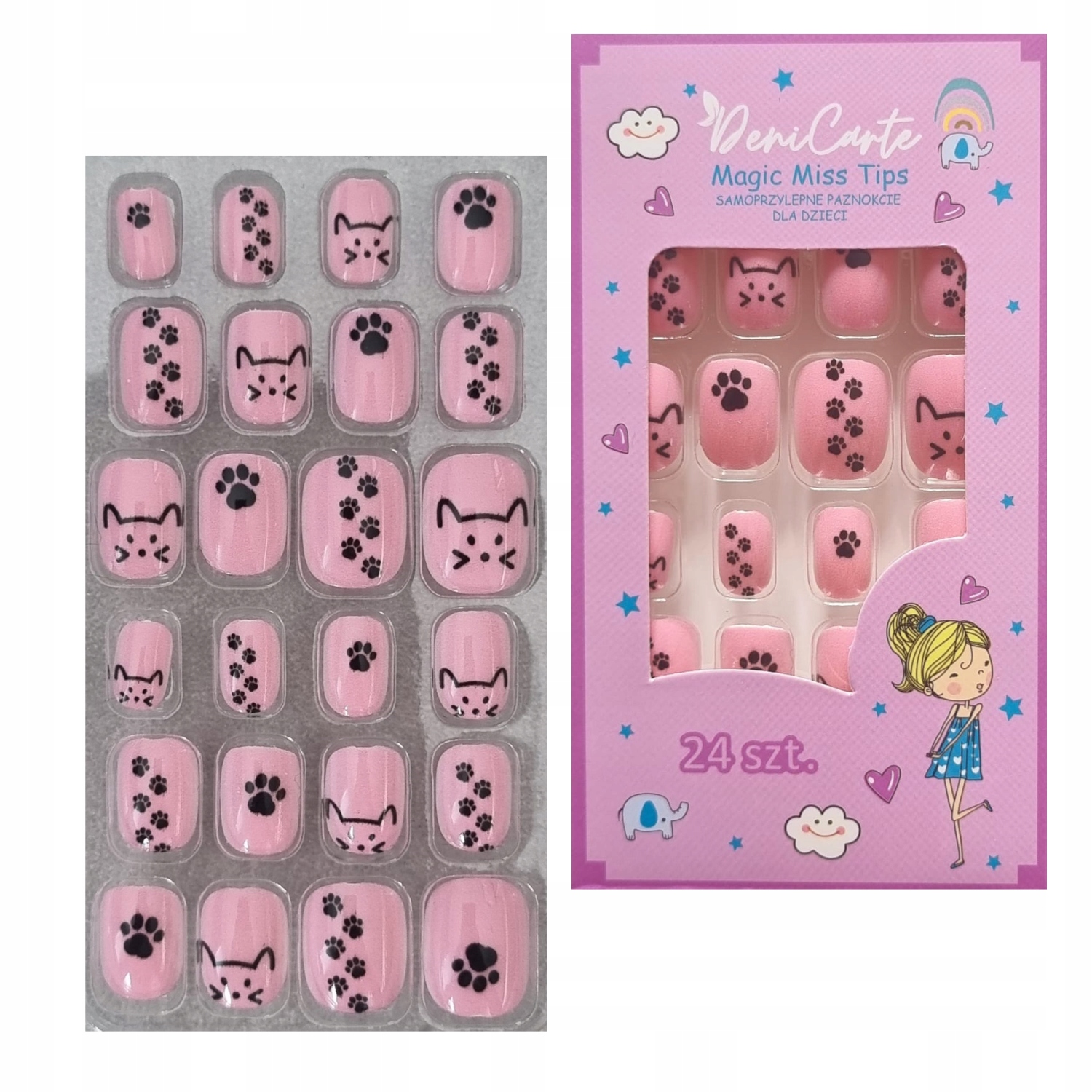 Штучні Нігті Тіпси Для Дітей Самоклеючі Рожеві Кошенята Лапки 24шт