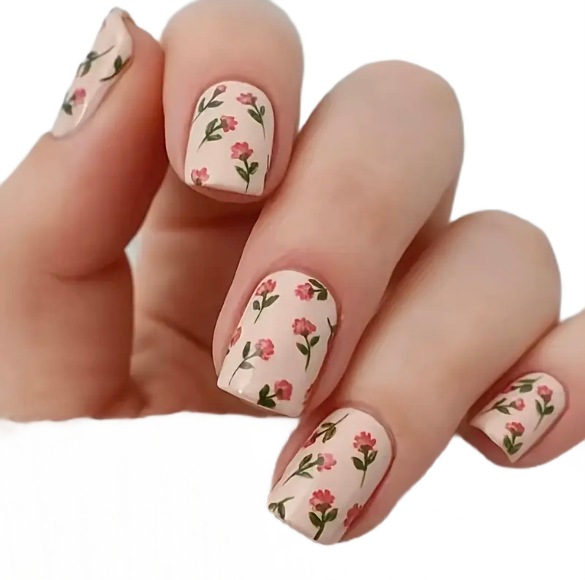 ШТУЧНІ НІГТІ ТІПСИ КВАДРАТИ КОРОТКІ NUDE БЕЖЕВІ КВІТИ КЛАСИЧНІ 24
