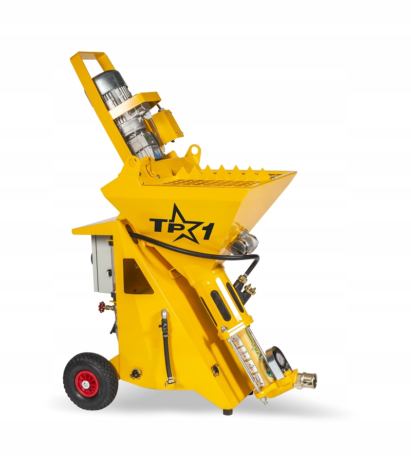 Универсальный компактный штукатурный агрегат с мощным приводом 230 В (основной двигатель 3 кВт), изготовленный специально для перекачивания, распыления и нанесения сухих растворов, адаптированных для машинного нанесения, пастообразных материалов и многих других. Благодаря современным решениям машина легче конкурентных решений, а также может быть разобрана на несколько модулей, что значительно облегчает транспортировку. Машина может работать как с сухими растворами (машинными штукатурками, самовыравнивающимися стяжками), так и с готовыми продуктами, например, фасадными штукатурками. Для готовых минометов машина должна быть оснащена дополнительным оборудованием, также возможно приобрести машину, адаптированную к обоим типам применения – версия PLUS. Переменная производительность накачки возможна благодаря регулированию скорости мотор-редуктора с помощью инвертора.