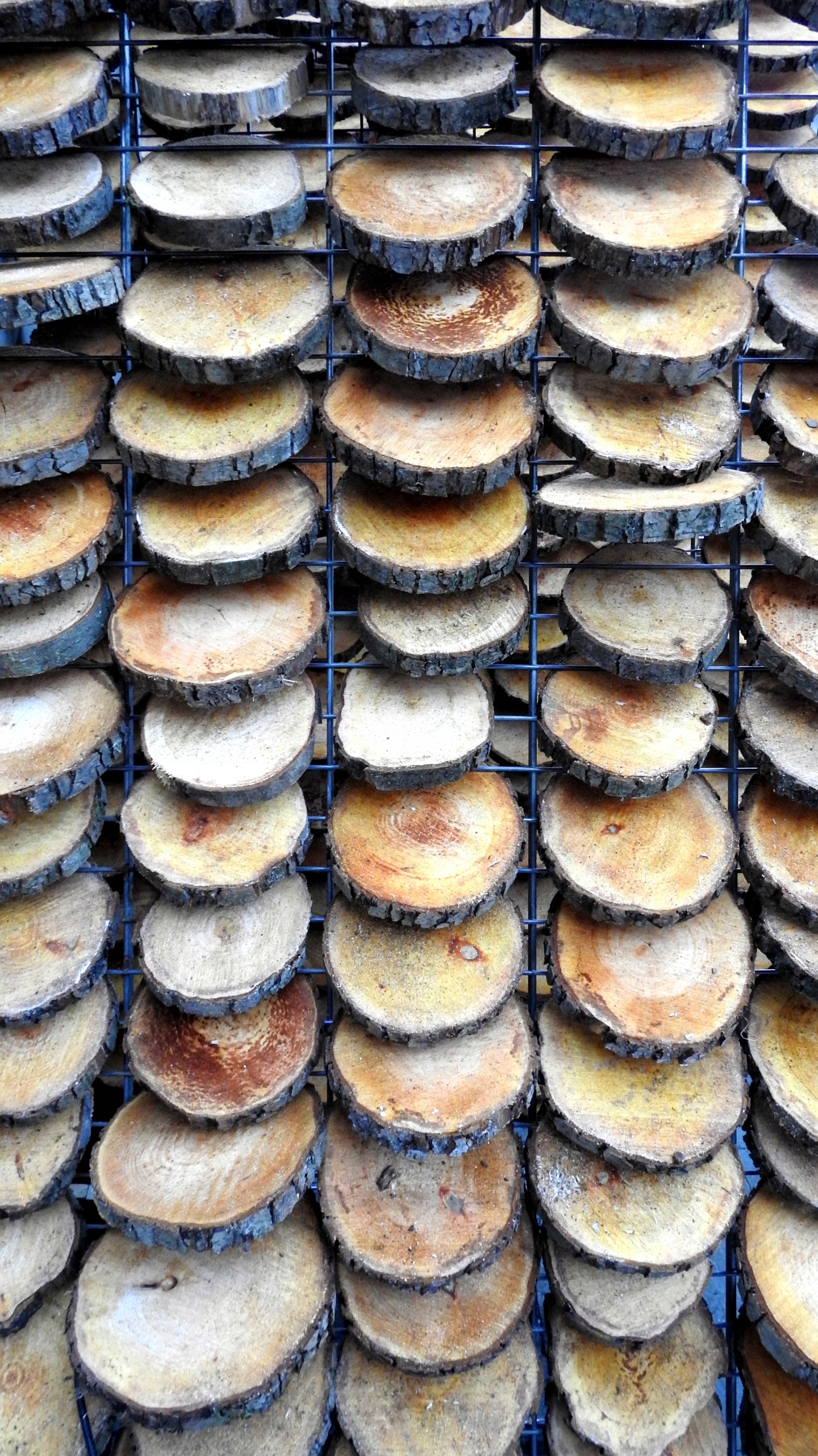Поверхность ломтиков не полируется и после нарезки имеет первоначальную структуру.Внимание:Ломтики требуют сушки, так как они свеженарезанные.Неправильная сушка или отсутствие сушки, оставление ломтиков во влажной среде приводит к их плесневению! Это касается как свежих, так и сушеных срезов.Лучше всего обеспечить приток воздуха к каждому срезу, что позволит обеспечить бережную сушку и предотвратить чрезмерное растрескивание древесины - чем медленнее мы сушим, тем меньше трещин.Трещины появляются часто из-за того, что древесина распилена поперёк зерно имеет такие тенденции.