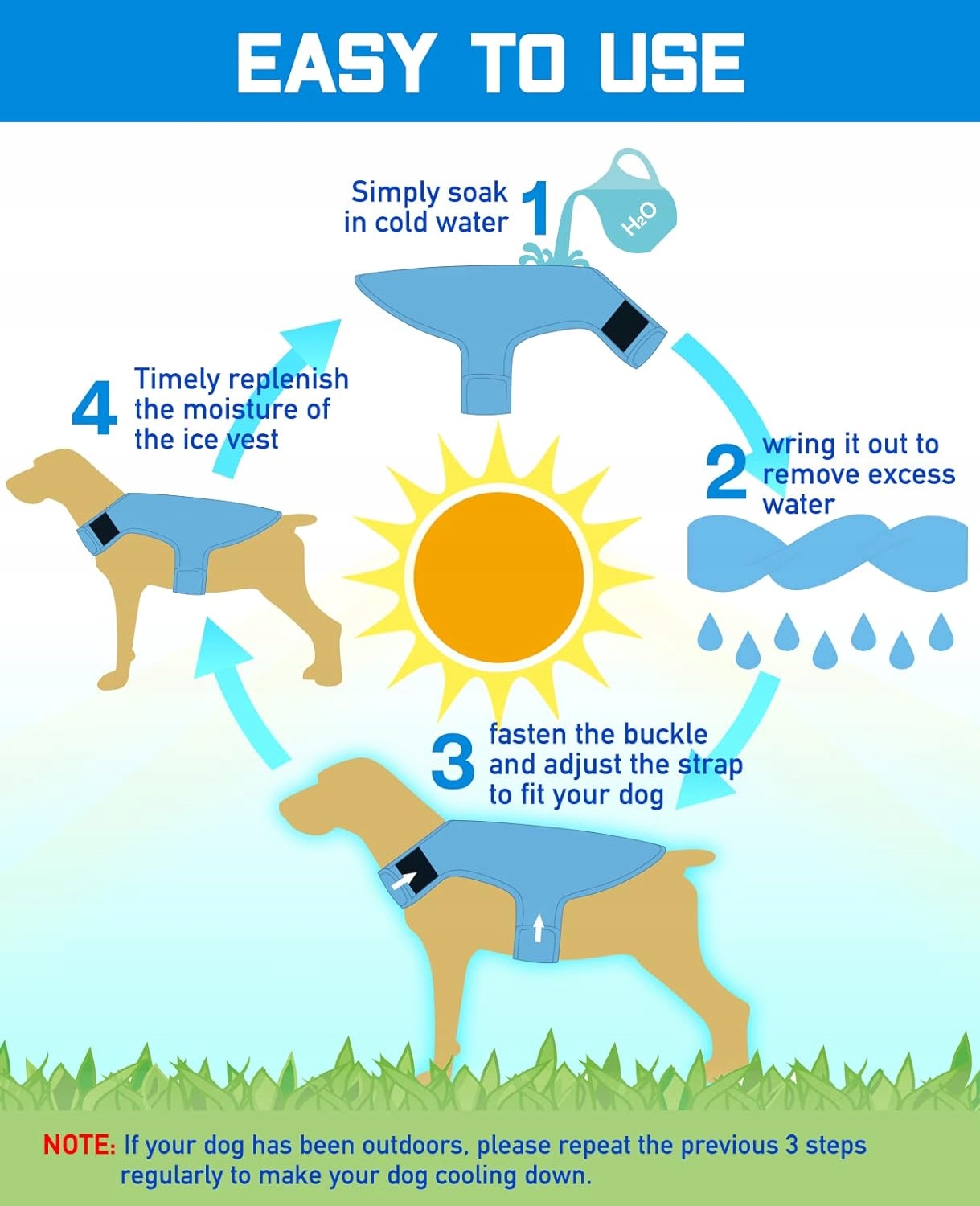 - Легкий и удобный. Этот охлаждающий жилет для собак, изготовленный из ультрамягкого, легкого, эластичного и дышащего материала, предназначен для того, чтобы ваш питомец оставался прохладным и комфортным. сушить во время ношения. Тщательно срезанный край обеспечивает максимальный комфорт, не натирает кожу собаки и не запутывается в ее шерсти.