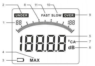 Прибор имеет функцию измерения в Быстром режимеe для обычных измерений и в Медленном режиме для измерений среднего уровня шума.