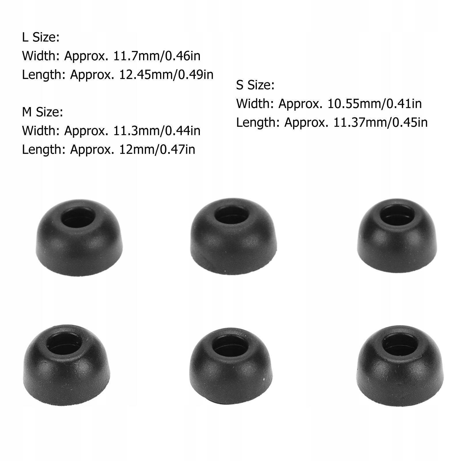 - Размер M: ширина: прибл. 11,3 мм/0,44 дюйма, длина: прибл. 12 мм/0,47 дюйма.