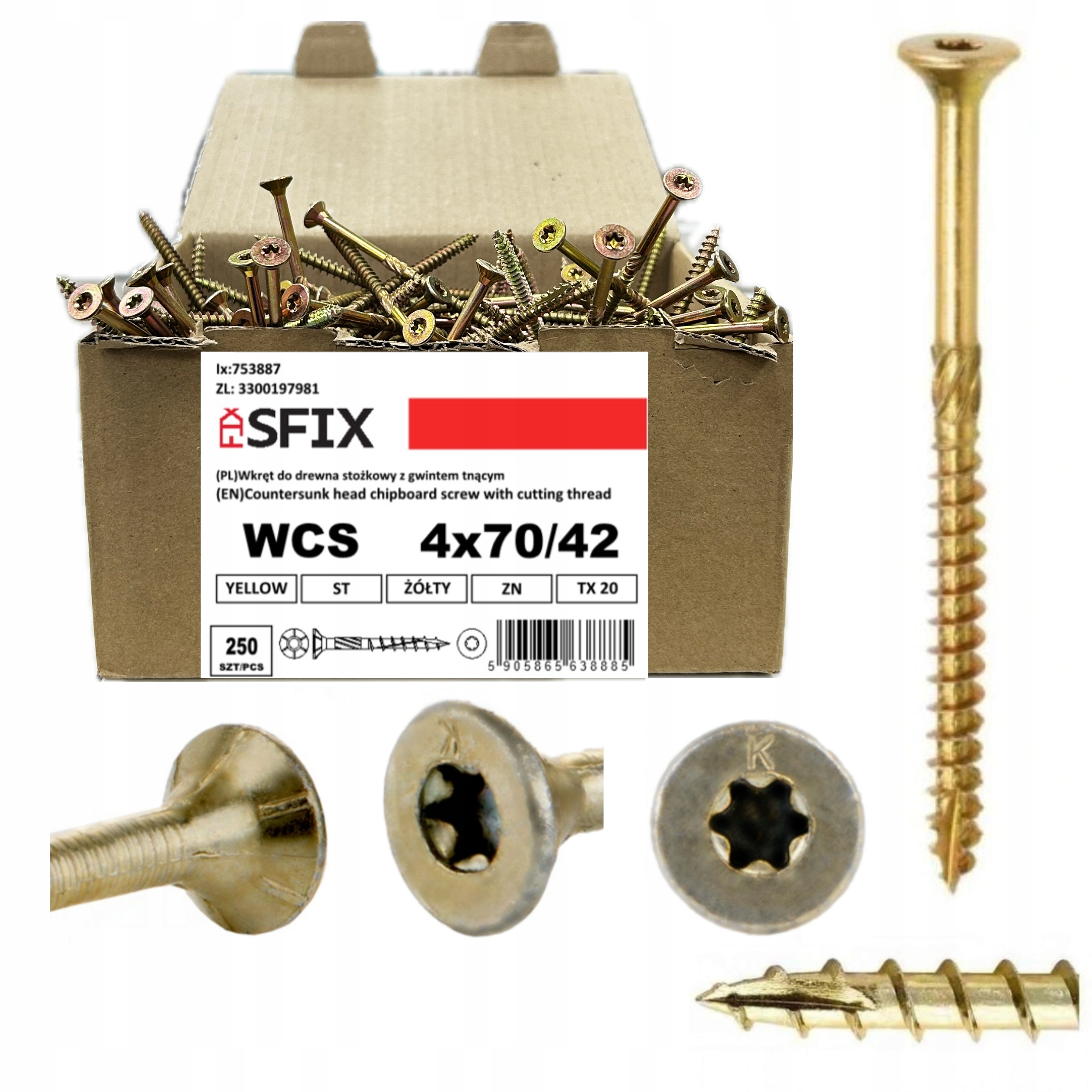 ШУРУРЫ СТОЛЯНЫЕ ПО ДЕРЕВО, КОНИЧЕСКИЕ SFIX 4x70 TORX 250 шт.