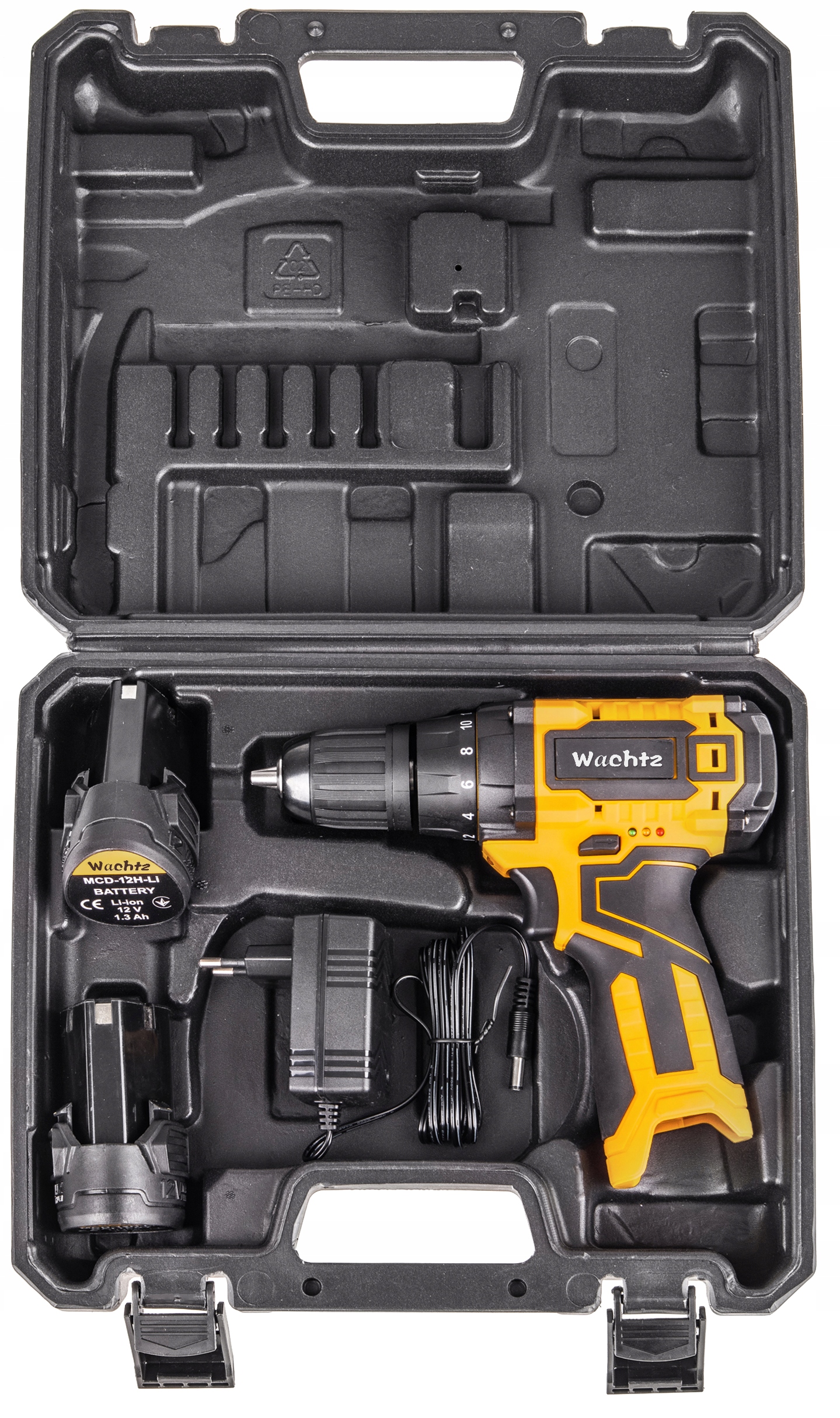 2 литий-ионных аккумулятора 1,3 Ач | СВЕТОДИОДНАЯ ПОДСВЕТКА | РЕГУЛИРОВКА СКОРОСТИ | ЗАРЯДНОЕ УСТРОЙСТВО | Чемодан | НАБОР СВЕРЛ И СВЕРЛ