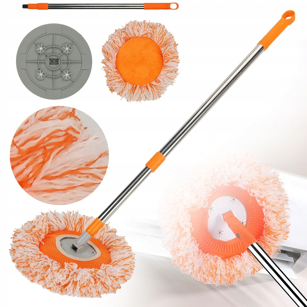 Вращающаяся на 360° швабра из микрофибры для полов и мебели. Регулируемая ручка 180 см.