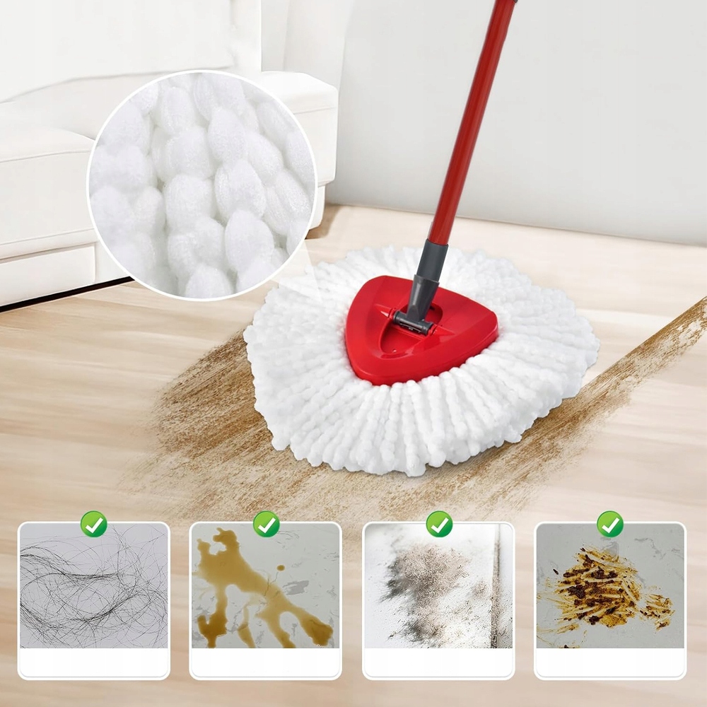 Сменная насадка для швабры изготовлена из 100% микрофибры, которую очень легко очистить от грязи и пыли и которая идеально подходит для полов с гладкими поверхностями, таких как паркетные полы, плитка, ламинат, мраморные полы и стеклянные окна. Прочный, можно стирать в машине.