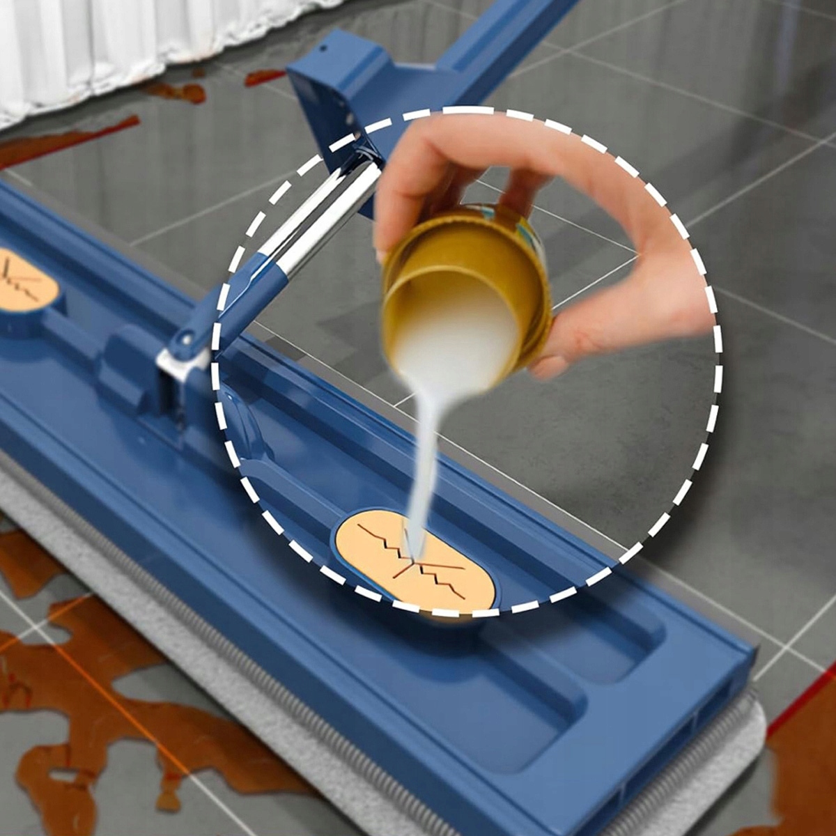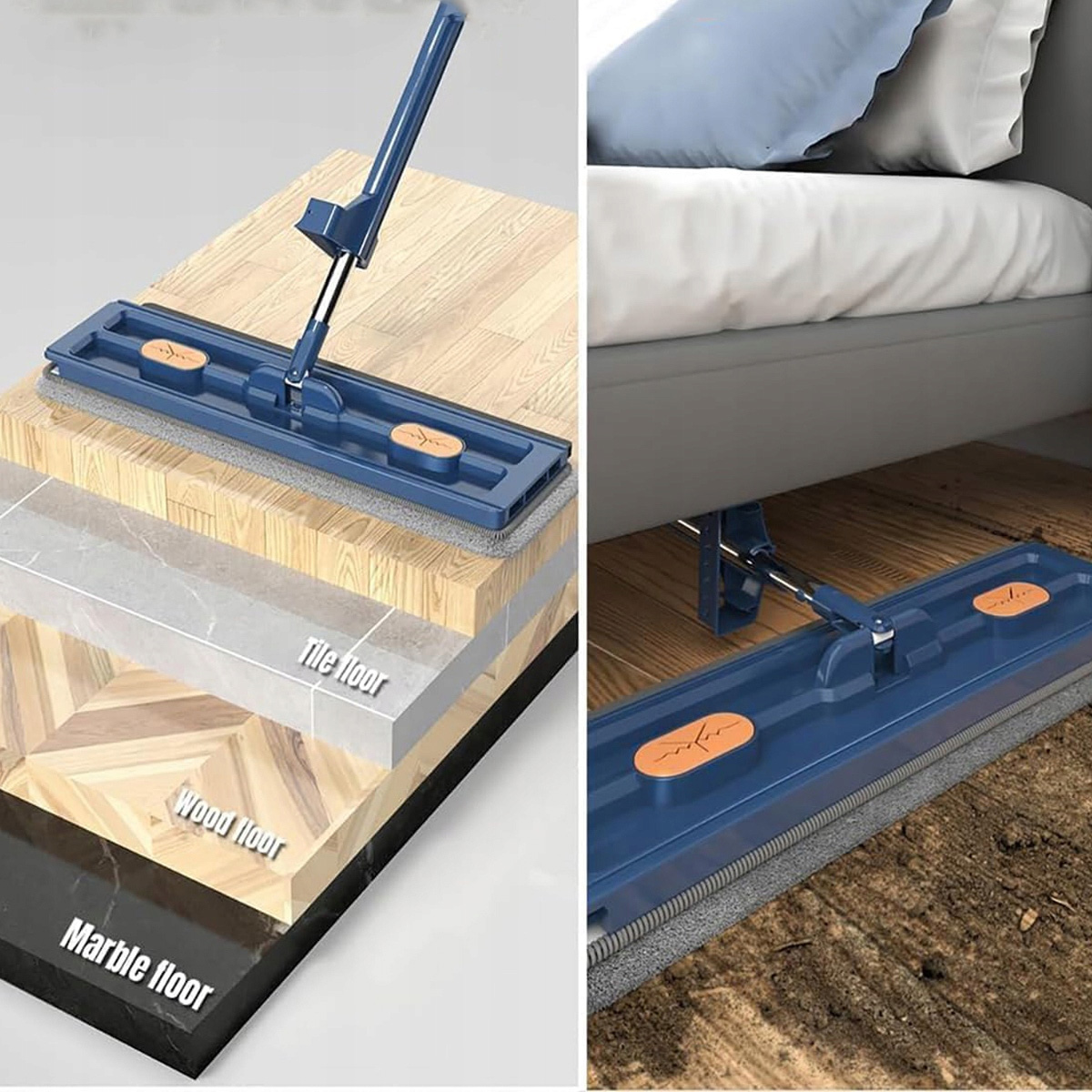 ☀ ☀ ☀ плоская шваблина и набор ведер, самостоятельно настраивая плоскую швабру для влажного и сухого использования с помощью скребки, 360 ° вращающейся швабры, регулируемой длинной ручкой из нержавеющей стали (темно-сине-желтая) h1 >