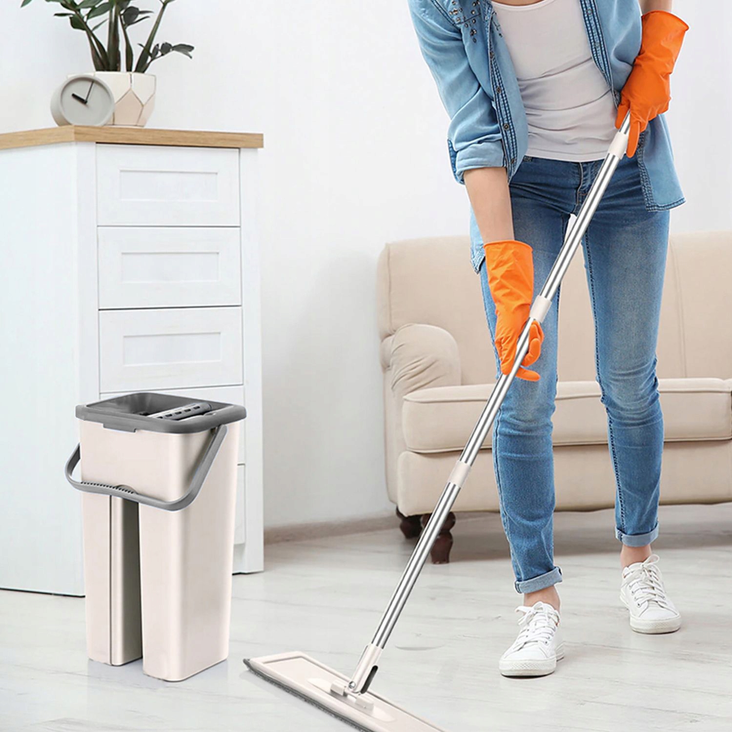 ШВАБРА С ВЕДРОМ, ПЛОСКАЯ, ДВУХКАМЕРНАЯ, С ОТЖИМКОЙ, ПОВОРОТНОЕ ВЕДРО ДЛЯ ПОЛА
