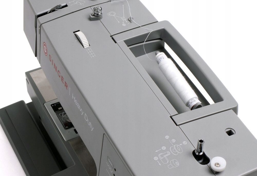 Модель машины отличается очень высокой универсальностью. Устройство поддерживает механизм, отвечающий за регулировку давления прижимной лапки, благодаря чему швейная машина SINGER HD 6605 может шить даже очень мягкие и деликатные материалы. Во время работы устройство может использовать два разных типа резьбы. Для этой цели имеются два специальных катушечных стержня, на которые можно надевать различные типы ниток. Основной горизонтальный штифт предназначен для работы с основными типами шпуль. В свою очередь, дополнительный вертикальный штифт будет полезен, в частности, для: при работе со специальными нитками, которые обычно насаживаются на катушки большого размера.