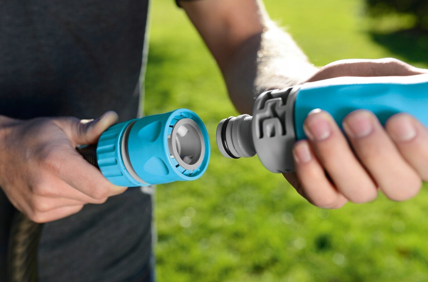 - Соединение отрезков шланга с помощью двухсоставных и быстроразъемных соединений не приводит к потере давления воды.