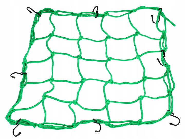 Практическая резиновая сетка для фиксации грузов, перевозимых на багажнике мотоцикла. Сетка изготовлена из гибкой прочной резины, оснащена прочными крючками. Каждый крючок устойчив к деформации, поэтому крепление грузов стабильное.