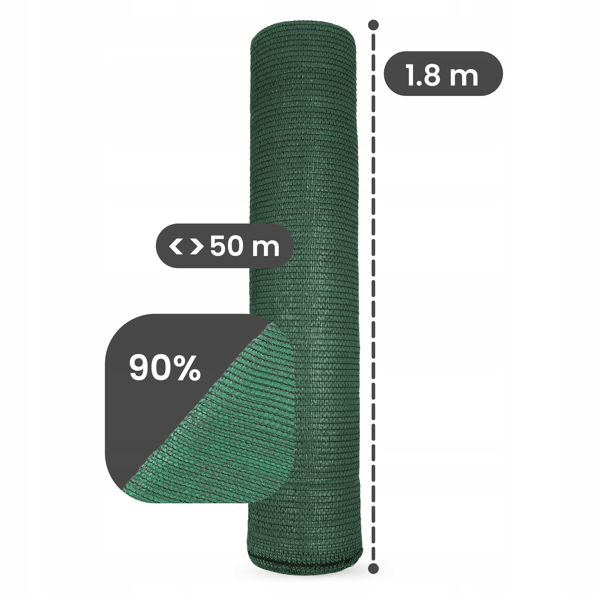 Теневая и защитная сетка 1,8 м x 50 м, 90 % зеленая
