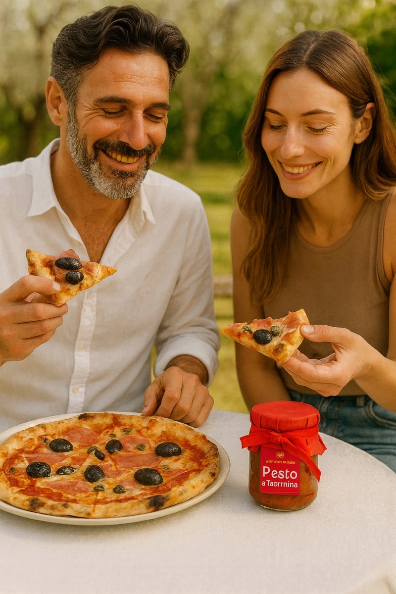 Песто ди Таормина — это квинтэссенция сицилийской кухни, полная ароматов, красок и страсти. Созданный из любви к средиземноморским традициям, он восхищает интенсивным вкусом томатов, черных оливок, каперсов и ароматных специй в сочетании с лучшим оливковым маслом первого отжима. Это настоящая Сицилийская страсть, заключенная в элегантную баночку, готовая превратить повседневные блюда в настоящий кулинарный шедевр.