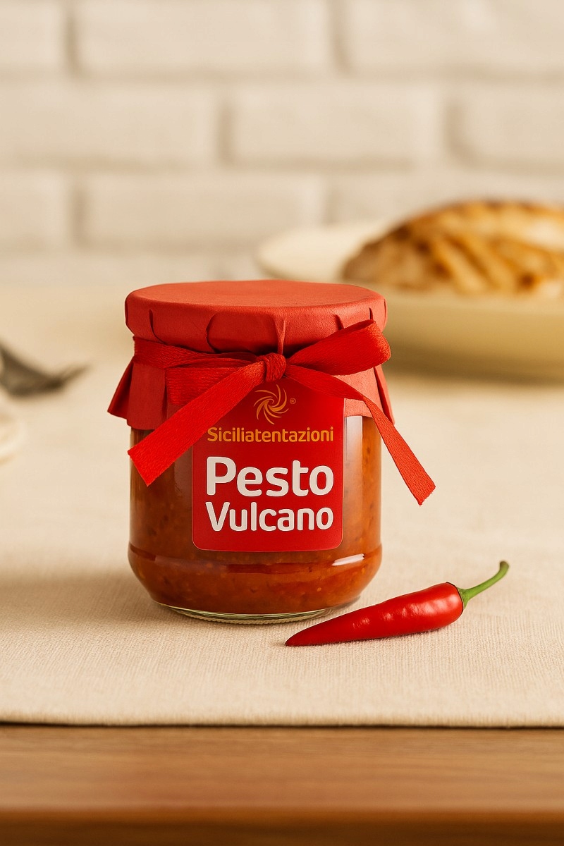 Песто Вулкано – это уникальный продукт, обязанный своим названием одному из самых очаровательных итальянских островов – Вулкано, входящему в состав архипелага Эолийских островов. Эта необыкновенная смесь вкусов была создана в месте, где земля встречается с огнем, а природа постоянно напоминает нам о своей силе. Его отчетливый, пряный вкус отражает характер вулканического ландшафта острова — интенсивный, глубокий и уникальный.