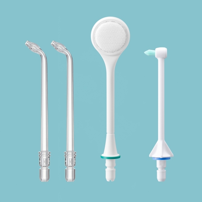 В комплекте с ирригатором зуба Panasonic EW-1614. Есть 4 заменяемых сопла. Две классические форсунки используются для ежедневного ородно -орошения и двух специализированных сопел для чистки языка и чистки языка. Набор форсунок обеспечивает комплексную гигиену, обеспечивая высочайшее качество ежедневного ухода за полостью рта.