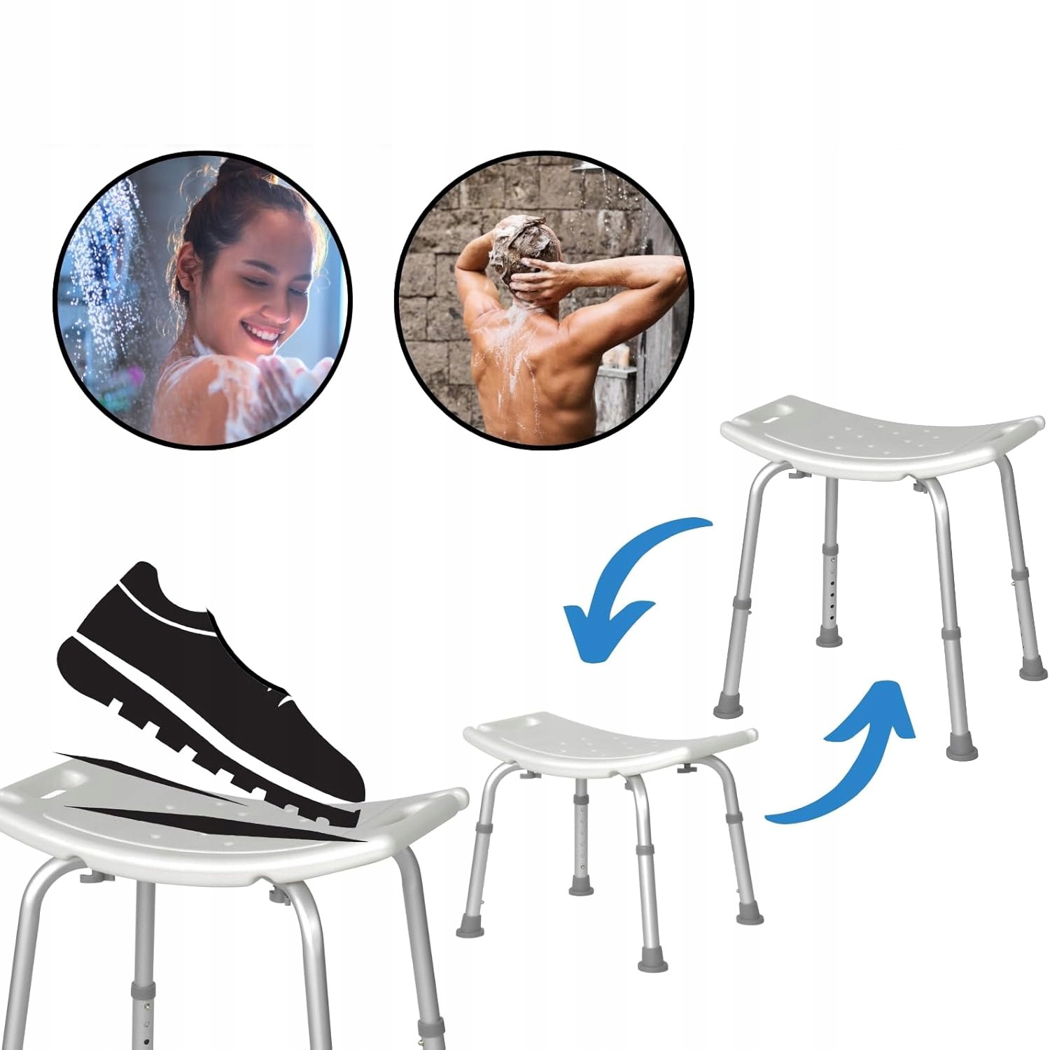 Этот высококачественный алюминиевый душ -табурет обеспечивает максимальную захват на влажных плитках благодаря незлостным резиновым ногам. Сиденье для душа имеет специально спроектированную, не стекло поверхность с дренажными отверстиями, которая обеспечивает отток воды и удобное, стабильное сиденье даже во влажных комнатах. Этот стул в ванной комнате идеально подходит для пожилых людей, людей с ограниченной физической эффективностью, беременных женщин или людей во время выздоровления после операции.