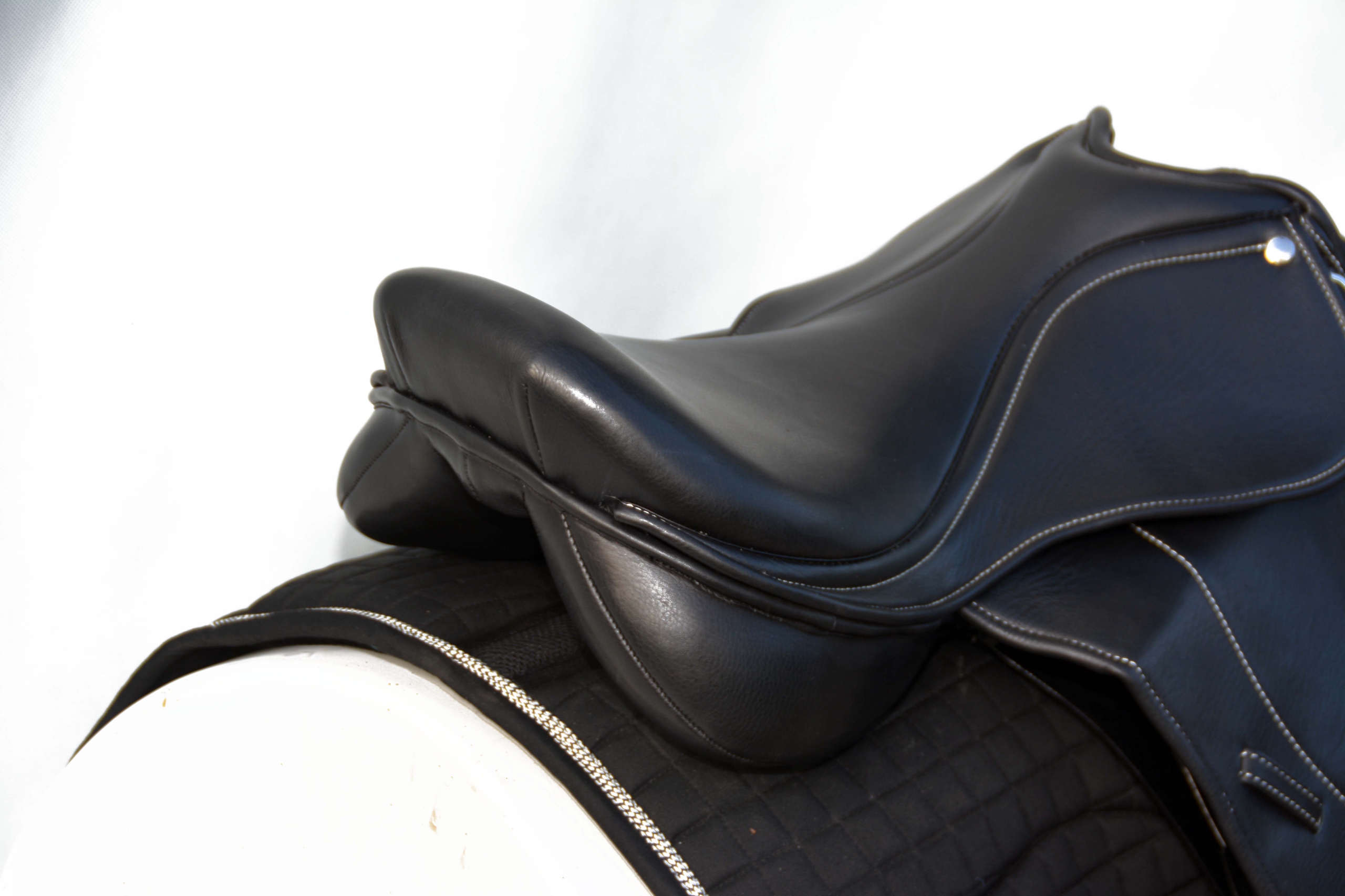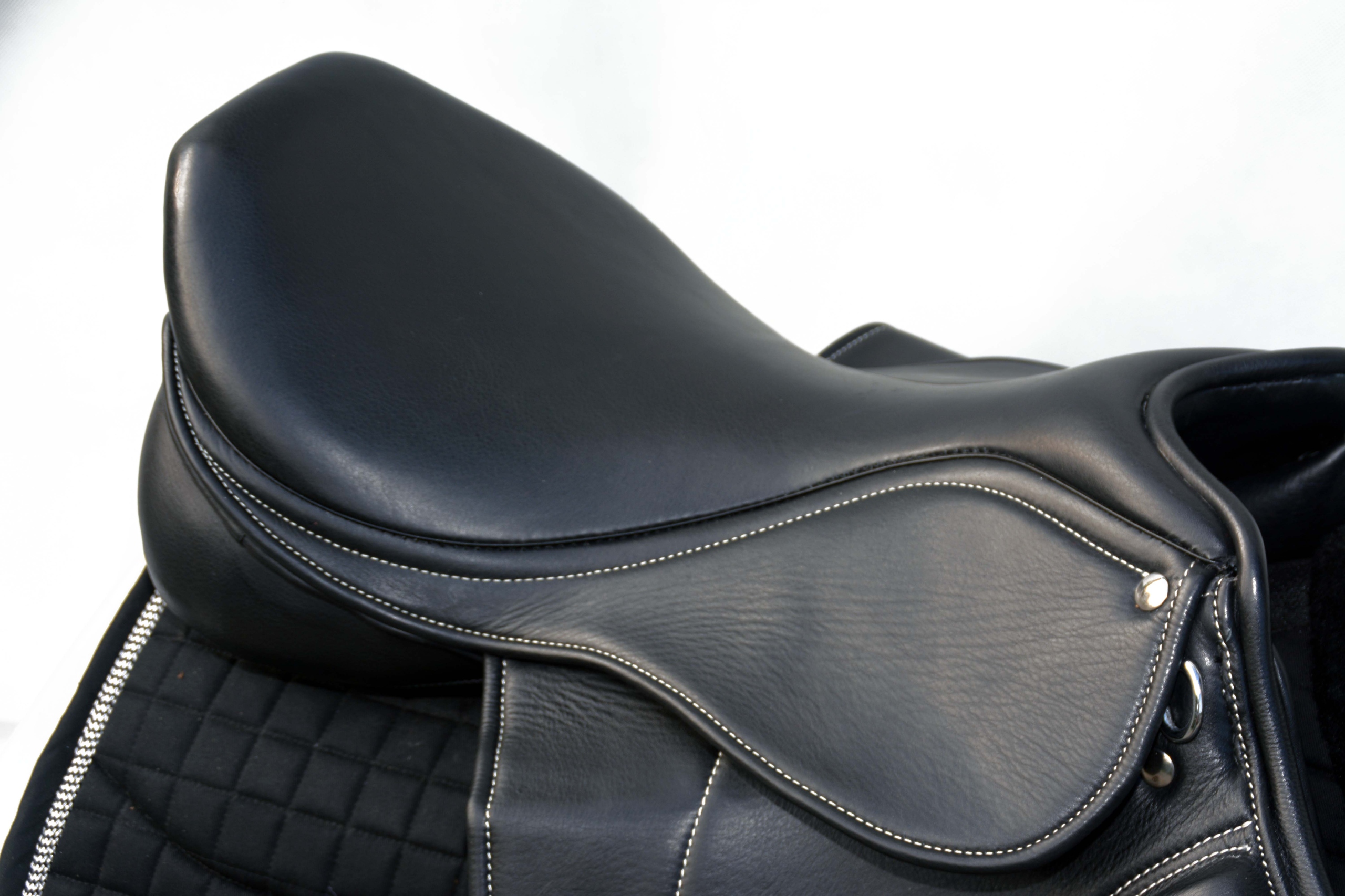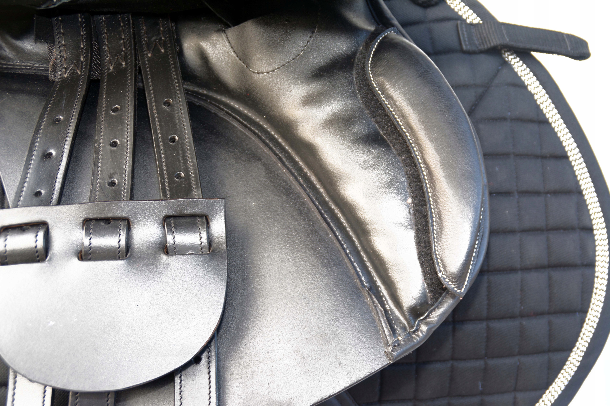 Седло для прыжков длиной 17,5 дюймов — полностью изготовлено из очень хорошей отборной мягкой коровьей кожи. Изготовлено на шорной фабрике во Франции. Седло имеет легкую конструкцию, дерево сконструировано таким образом, что бедра и особенно тазобедренные суставы не подвергаются лишним нагрузкам, оптимально расположенный центр позволяет обеспечить правильную посадку всадника. Коленный блок регулируется застежкой-липучкой. Единственная модель седла по такой низкой цене.