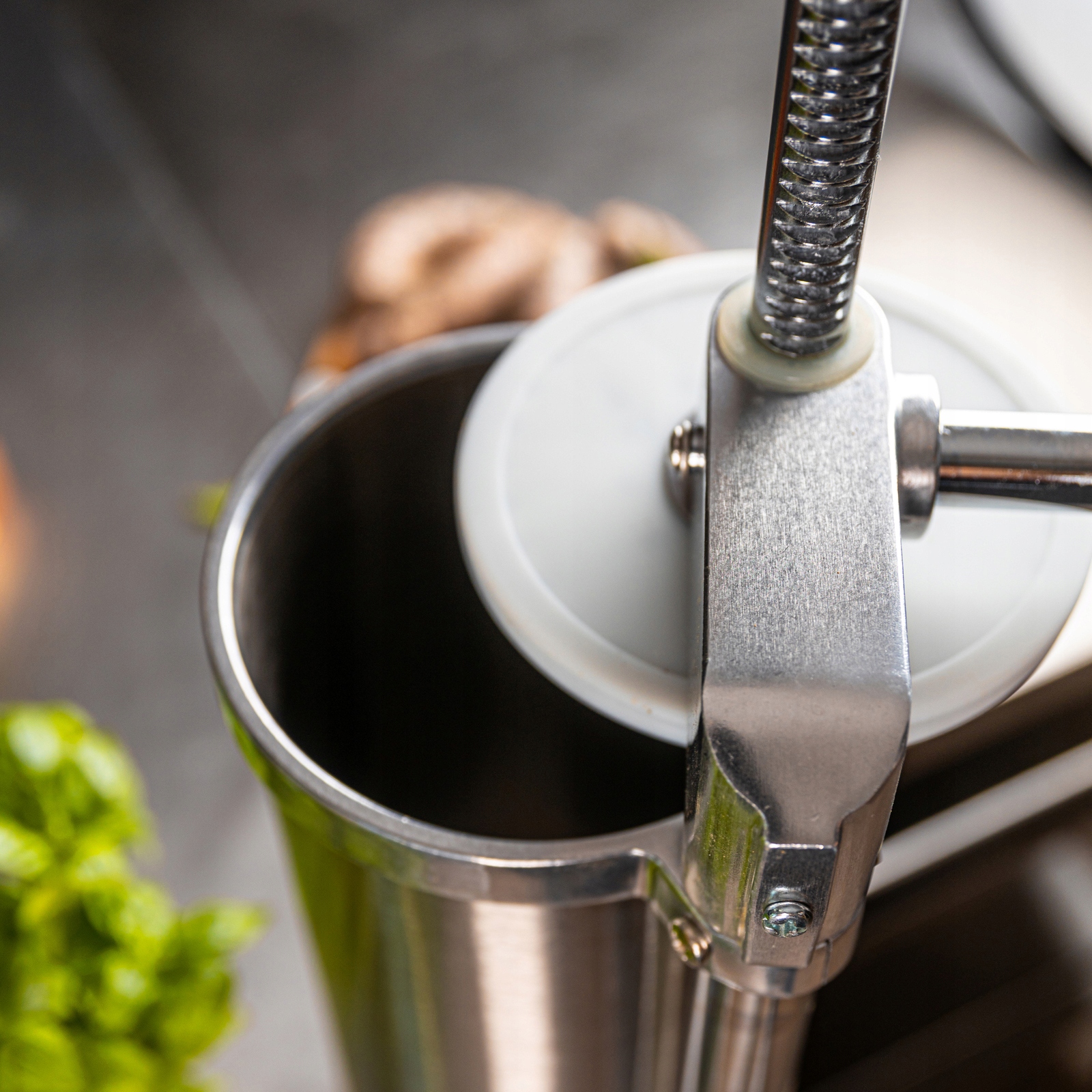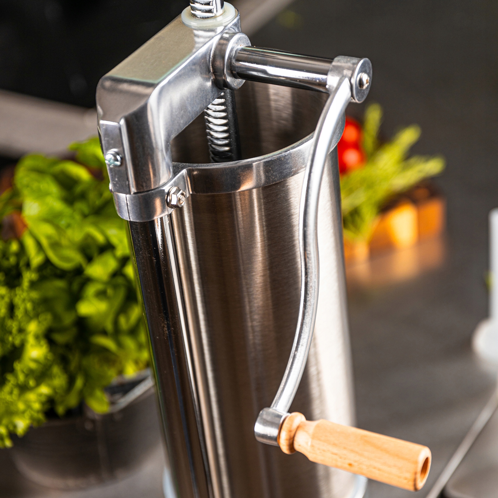 колбасная плюс - незаменимое устройство для любителей домашнего мяса, энтузиастов гриля и специалистов в области гастрономии. Изготовленная из высококачественной нержавеющей стали , гарантирует долговечность, гигиену и легкую очистку. Его вертикальный дизайн заставляет его занимать мало места на стойке, а процесс заполнения кожухи для колбасы прост и удобен.