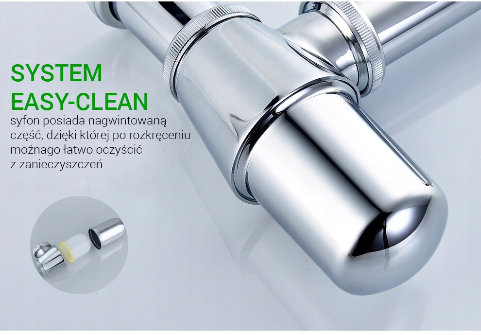 Сифон изготовлен из высококачественной нержавеющей стали, покрытой несколько раз полированным хромом. Решающим преимуществом сифона является его прочное качество изготовления и ревизия, позволяющая очищать сифон после установки.